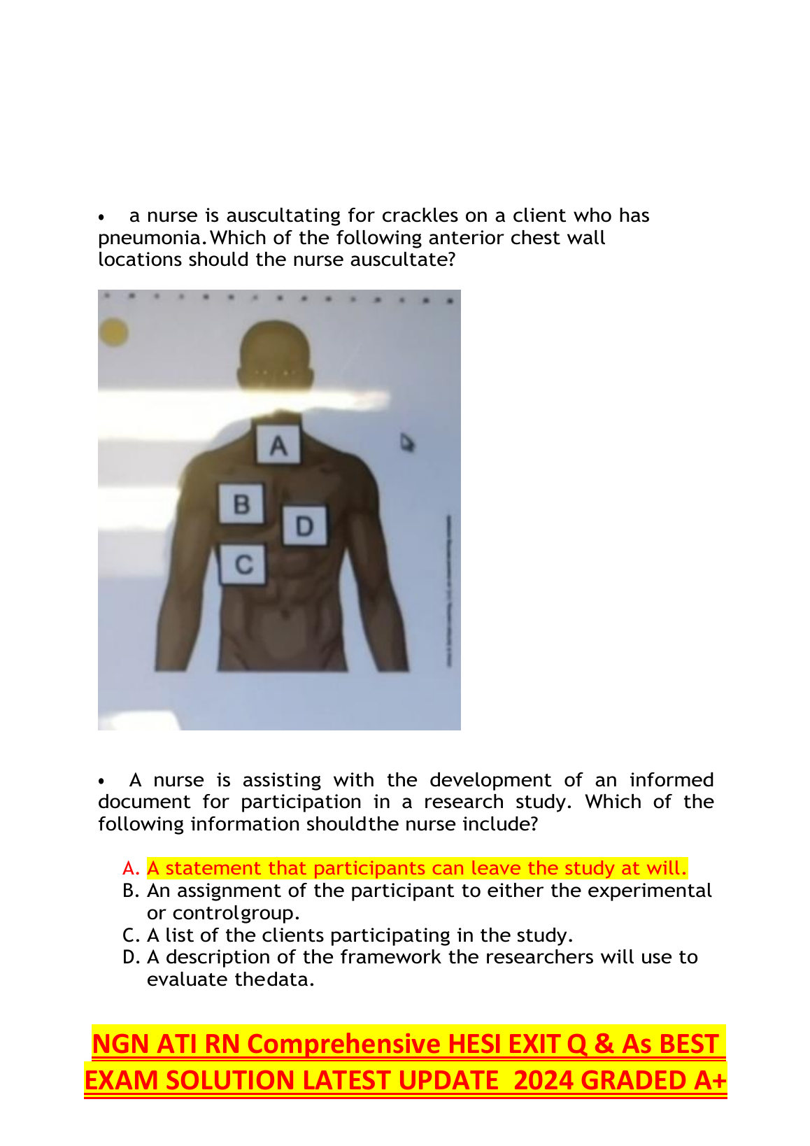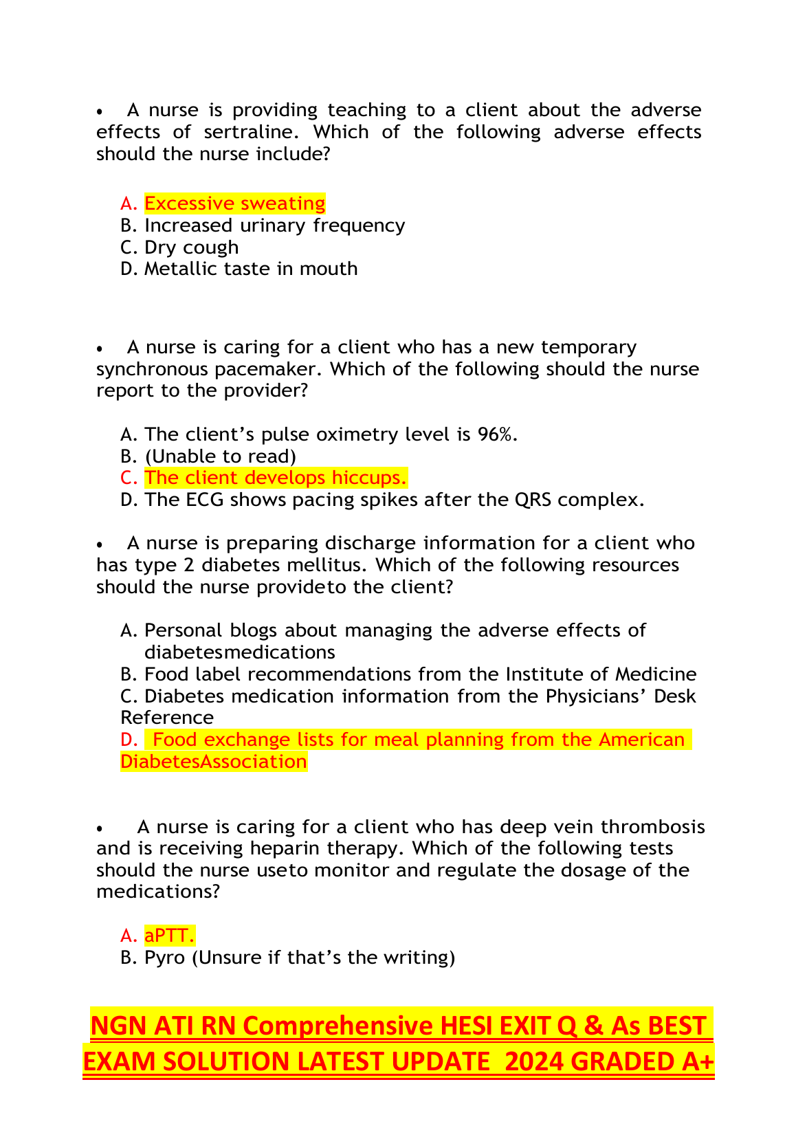 HESI Exit Exam NGN ATI RN Comprehensive Test Bank 2024-2025 | Verified Q&A with Rationales for A+ Grade
