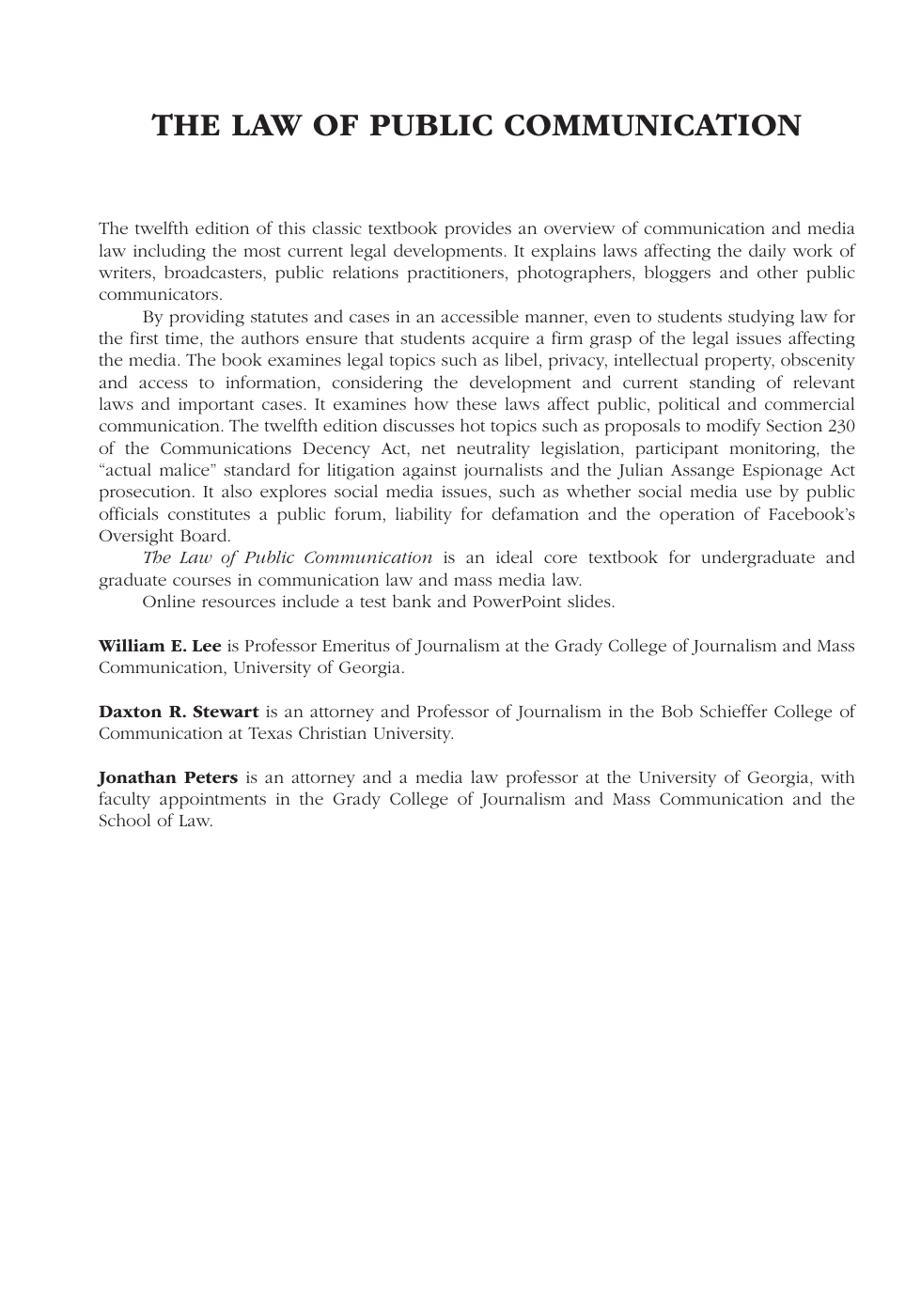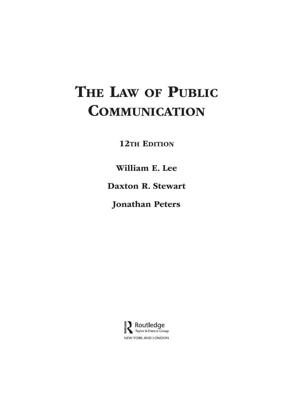 Test Bank for The Law of Public Communication, 12th Edition by William E. Lee, Daxton R. Stewart, and Jonathan Peters