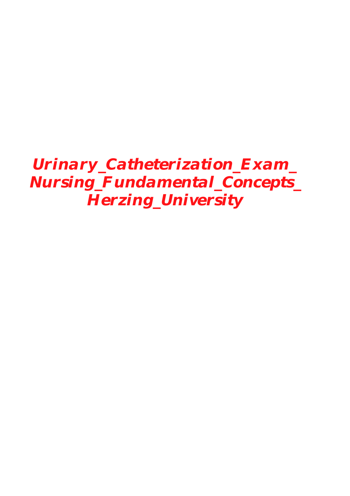 Struggling with the Urinary Catheterization exam in your Nursing Fundamental Concepts course at Herzing University? This comprehensive study guide is your ultimate resource for the 2025/2026 academic year. It covers all the essential concepts, procedures, and critical thinking questions you'll face on the exam. Our expertly compiled material is designed to help you understand complex topics with ease, ensuring you're fully prepared to ace the exam on your first attempt and avoid costly resits. Get the confidence you need to succeed in your nursing studies. Download now and secure your path to passing!