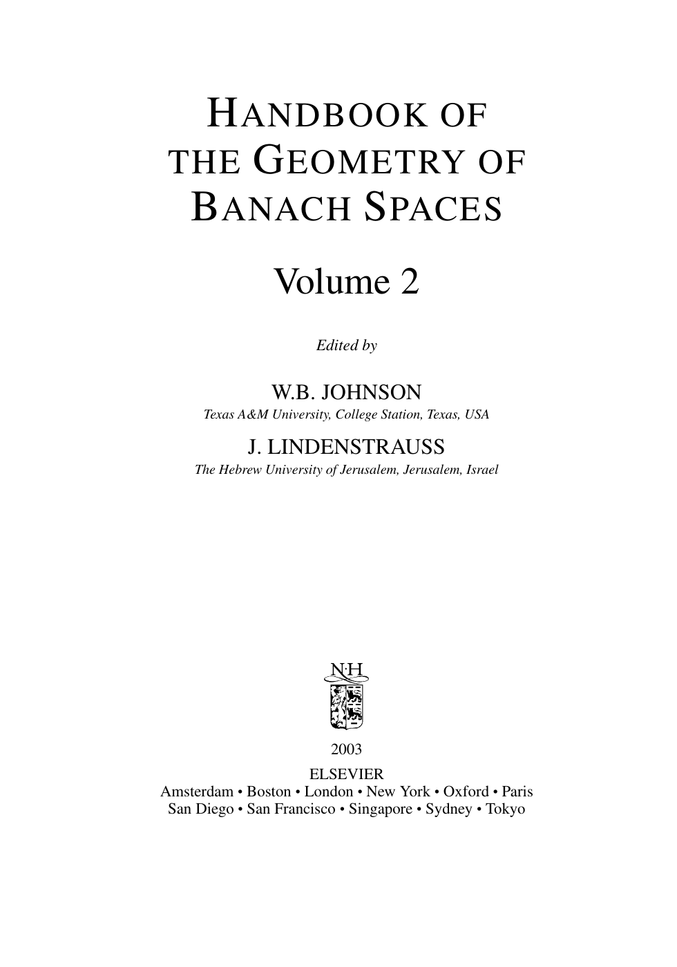 Unlock a deep understanding of functional analysis with the latest 2025/2026 resource for the 'Handbook of the Geometry of Banach Spaces, Volume 2'. Edited by the renowned mathematicians William B. Johnson and Joram Lindenstrauss, this essential guide provides a thorough exploration of advanced topics, ensuring you grasp complex concepts. This study companion is expertly designed to help you excel in your examinations, avoid resits, and achieve top grades on your first attempt. Dive into the core principles of Banach spaces and secure your academic success today.
