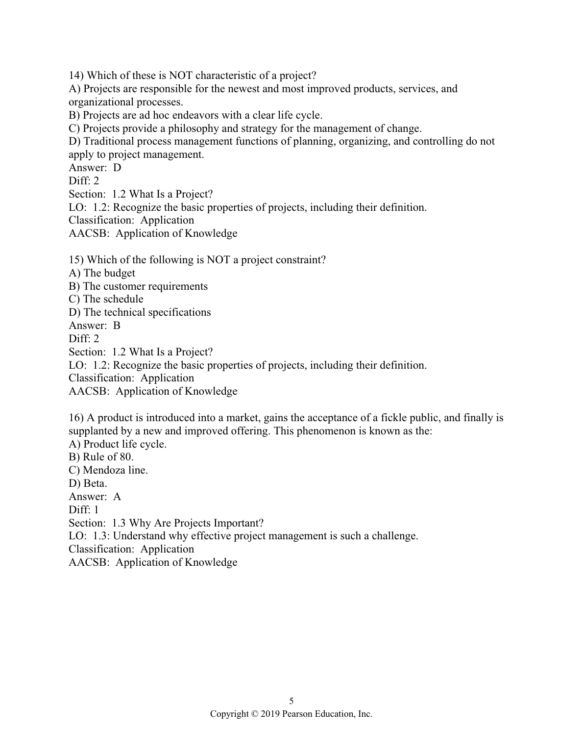 Test Bank for Project Management: Achieving Competitive Advantage, 5th Edition by Jeffrey K. Pinto