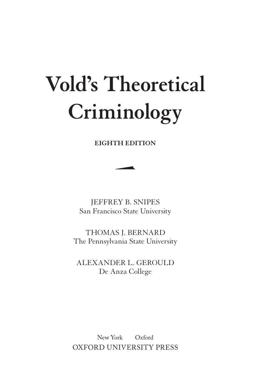 Test Bank for Vold's Theoretical Criminology, 8th Edition by George B. Vold, Thomas J. Bernard, Jeffrey B. Snipes, Alexander L. Gerould