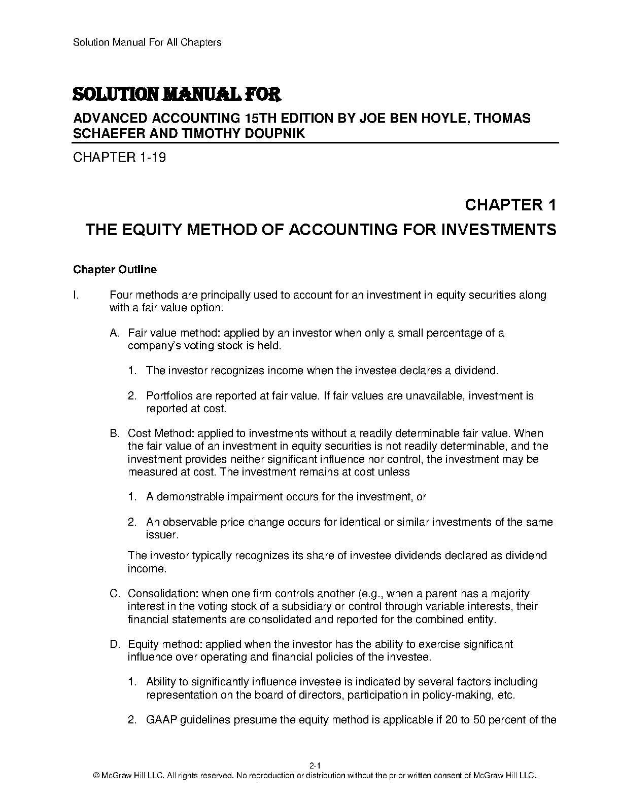 Solution Manual for Advanced Accounting, 15th Edition by Joe Ben Hoyle, Thomas Schaefer, and Timothy Doupnik