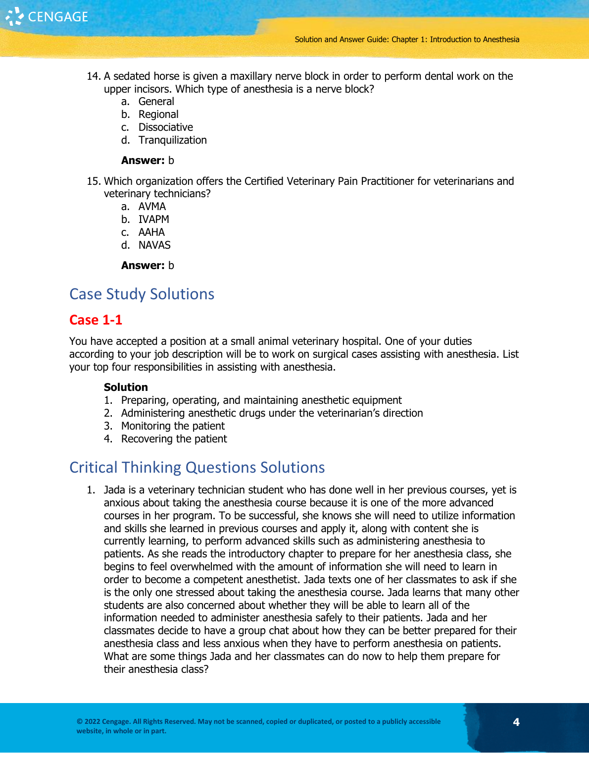 Master your veterinary technology course with the official Solution Manual for 'Anesthesia, Analgesia, and Pain Management for Veterinary Technicians, 1st Edition' by Janet Amundson Romich. This comprehensive guide provides verified answers and complete solutions for all chapters (1-21). It includes detailed responses to review questions, case studies, and critical thinking problems, making it an essential study tool. Ideal for exam preparation, this test bank helps you grasp complex concepts and confidently tackle your assessments.