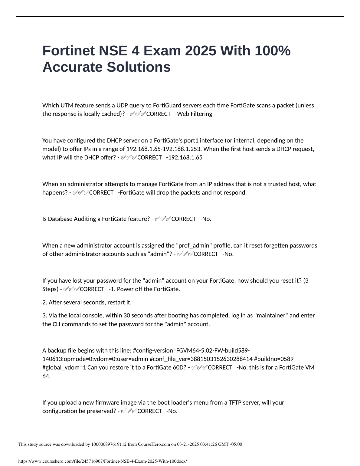 Fortinet NSE 4 Exam 2025 Test Bank: Comprehensive Questions and 100% Verified Answers