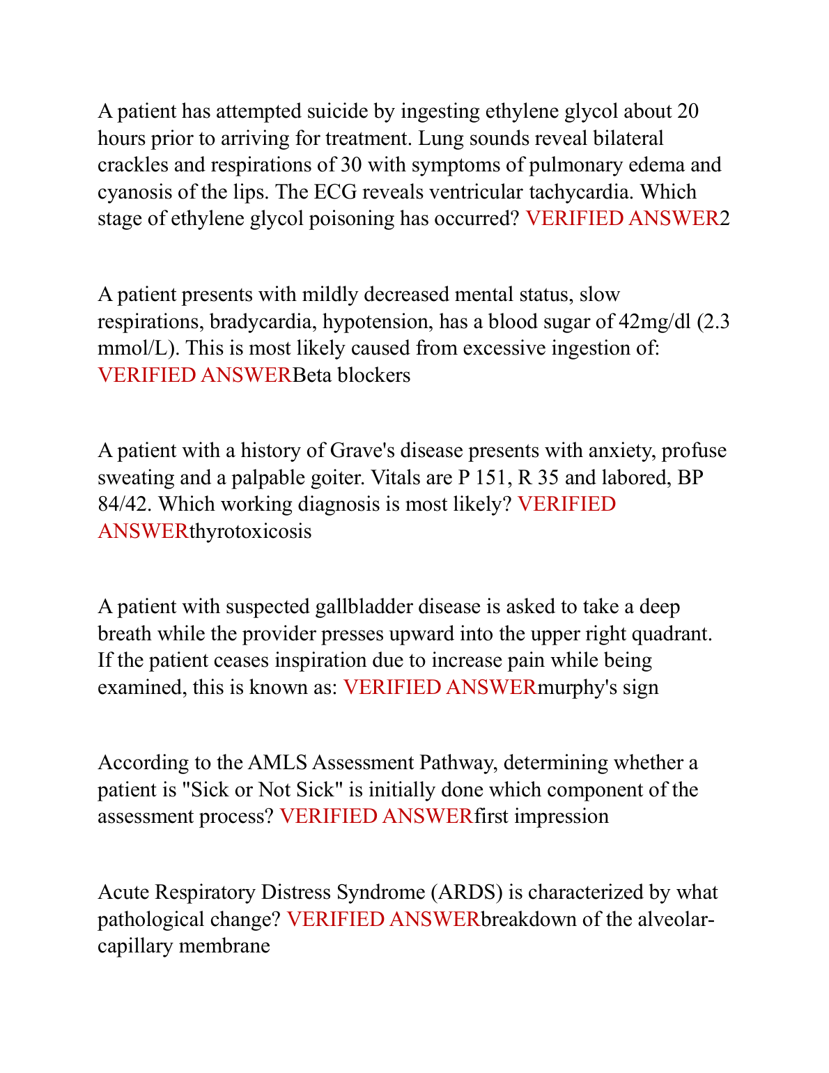 Ace your AMLS Proctored Exam with our latest 2025/2026 test bank, meticulously designed for the NAEMT AMLS 3rd Edition. This A+ graded resource features over 200 practice questions complete with 100% verified answers. Dive deep into critical topics such as respiratory and metabolic acidosis, cardiac emergencies, environmental hazards, and GI bleeds. Each question mirrors the format and difficulty of the real exam, ensuring you are fully prepared to pass on your first attempt. Eliminate exam anxiety and secure your certification with this essential study guide.