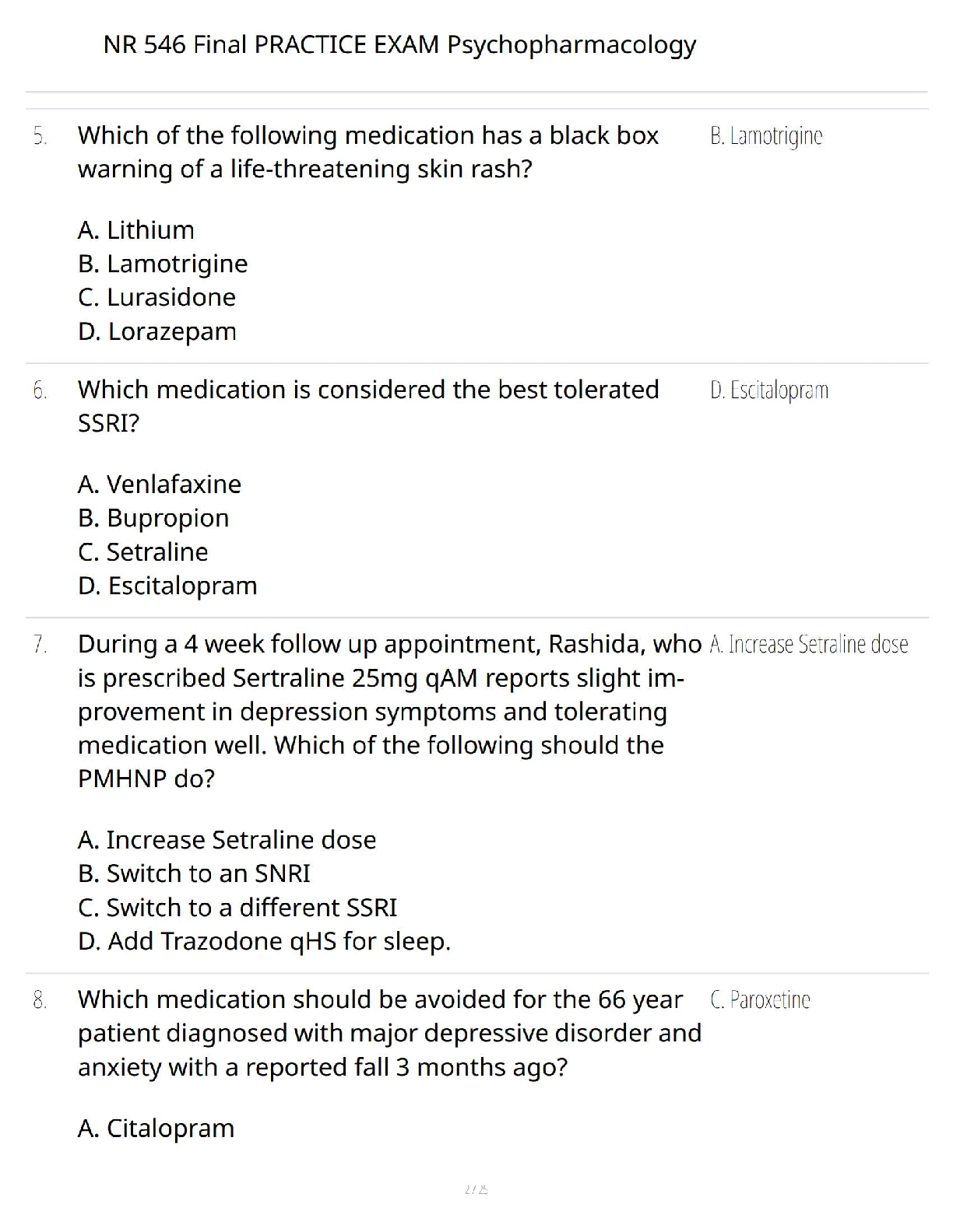 NR 546 Psychopharmacology Final Practice Exam Q&A - Latest 2025/2026 Study Guide to Pass on Your First Try
