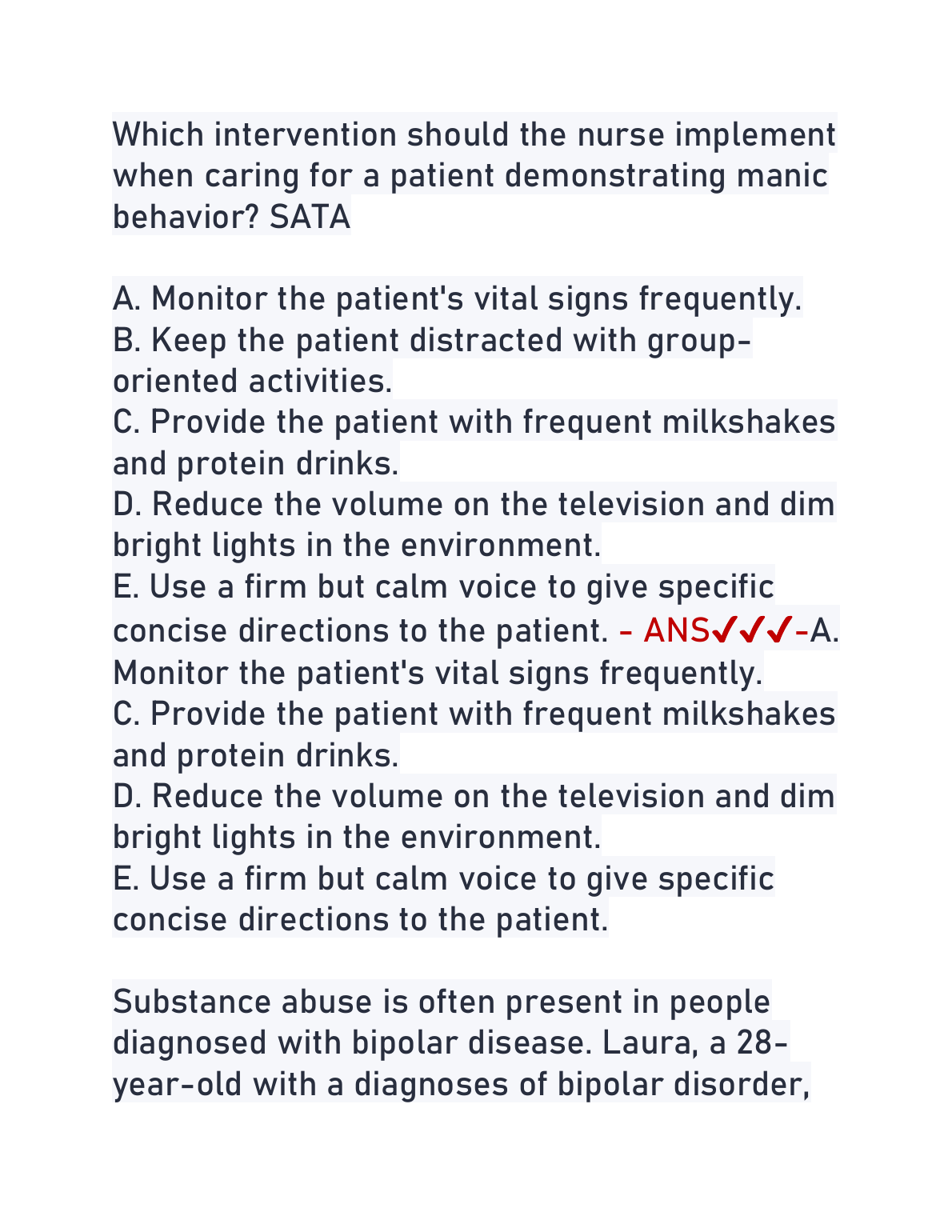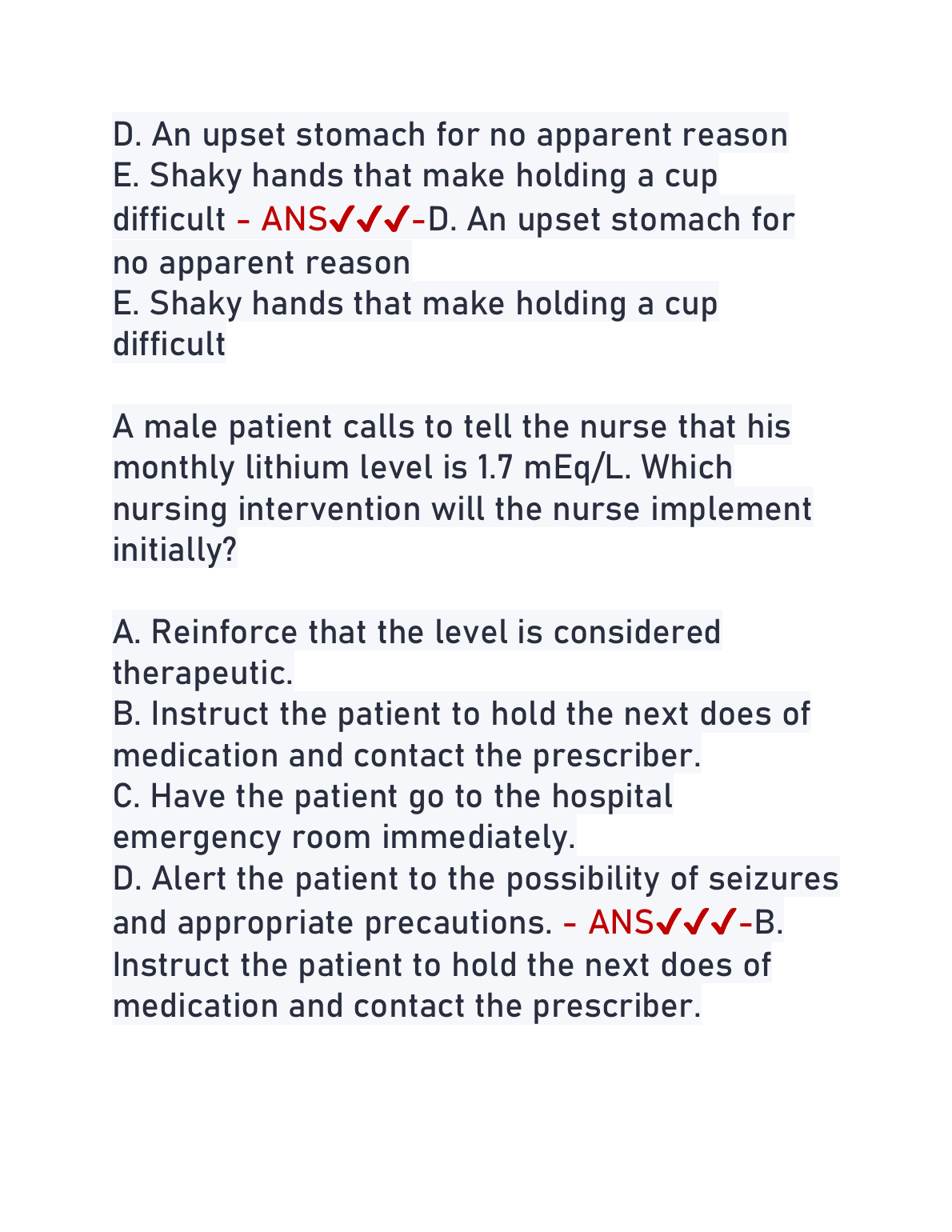 Get ready to ace your Psych Mental Health course with this comprehensive test bank for Practice Exam 3. This essential study guide contains a complete set of practice questions along with their detailed, verified answers. Designed specifically for nursing students for the 2025/2026 academic year, this resource is your key to mastering complex psychiatric nursing concepts and passing your exam on the first try. Avoid resits and build your confidence by tackling exam-style questions covering key topics in mental health. Download now and start your journey to success!