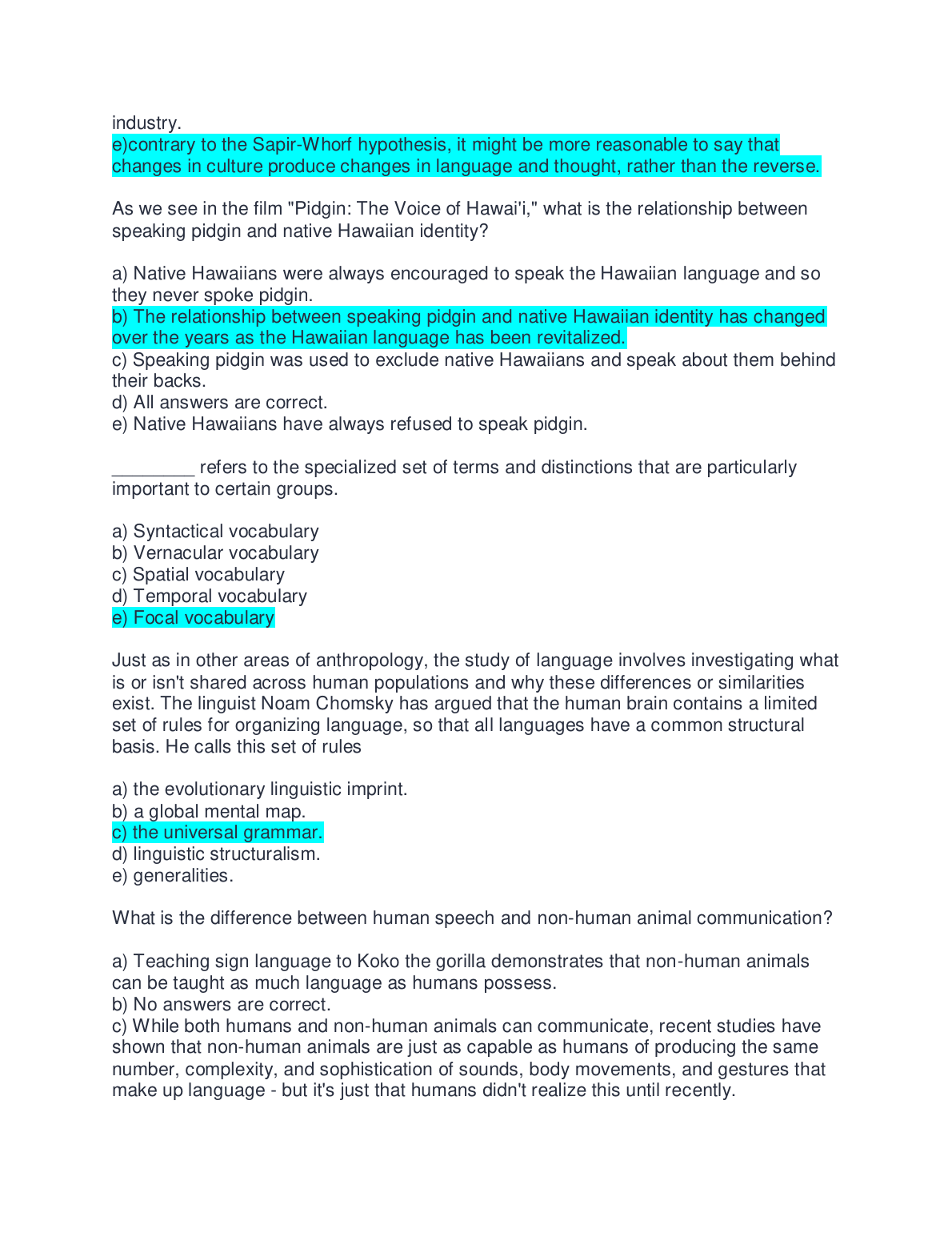 Unlock academic success in your ANT 2410 course with the official Test Bank for 'Anthropology: The Human Challenge, 17th Edition' by Haviland, Prins, Walrath, and McBride. This indispensable study aid features a vast collection of exam-style questions complete with correct answers, covering key topics in cultural and linguistic anthropology. Master complex subjects such as the origins of human language, the role of the FOXP2 gene, sociolinguistics, primate communication, and cognates. Designed to reflect the content and challenge of your actual exams, this test bank is your key to reinforcing knowledge, mastering concepts, and achieving an outstanding grade.