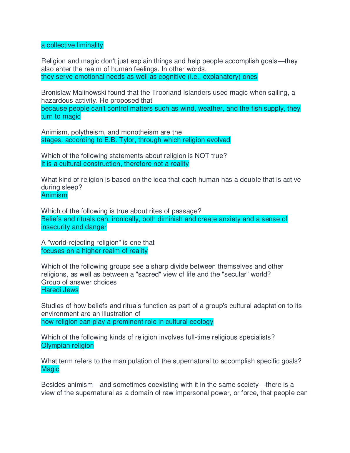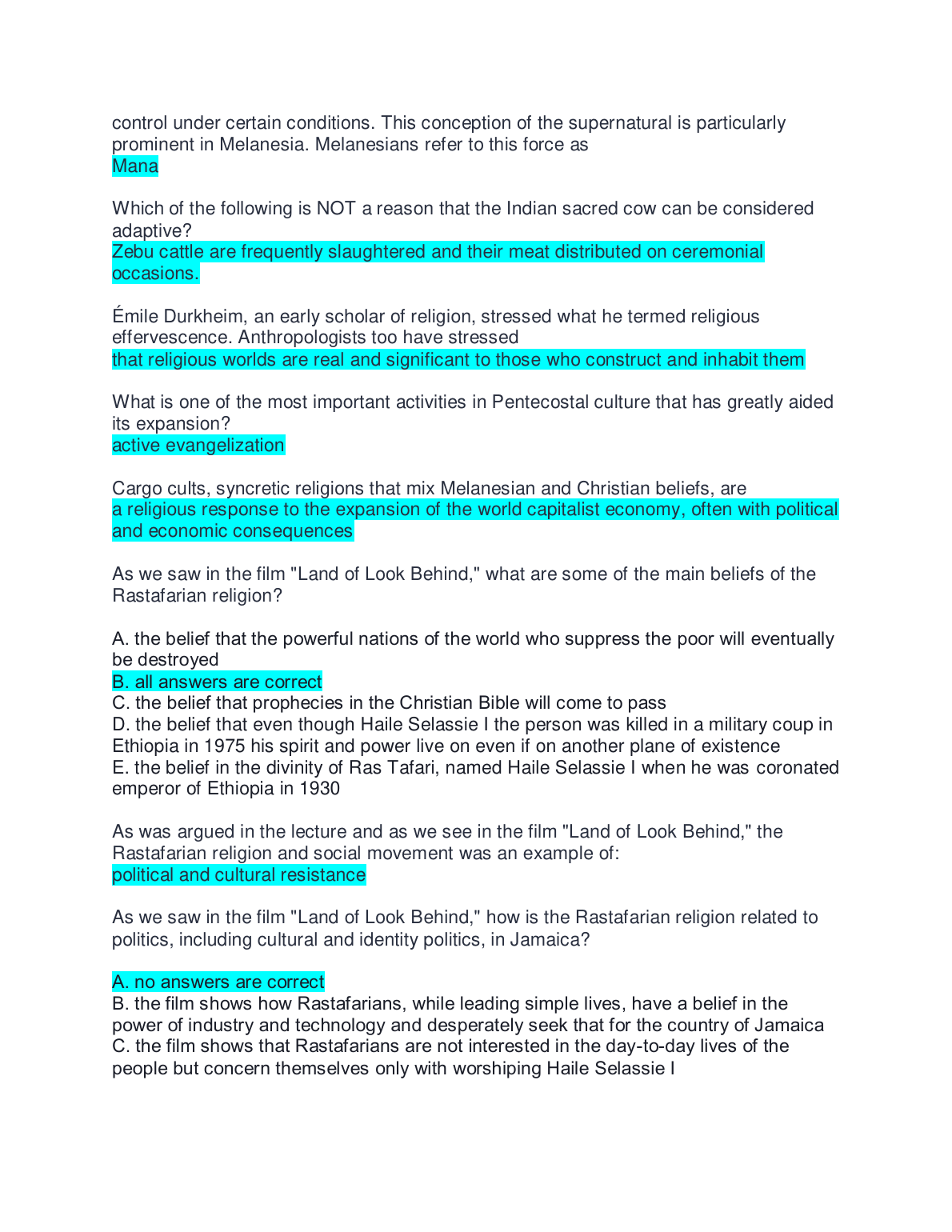 ANT 2410 Cultural Anthropology Exam 4 - Complete Test Bank with 100% Correct, Verified Questions and Answers