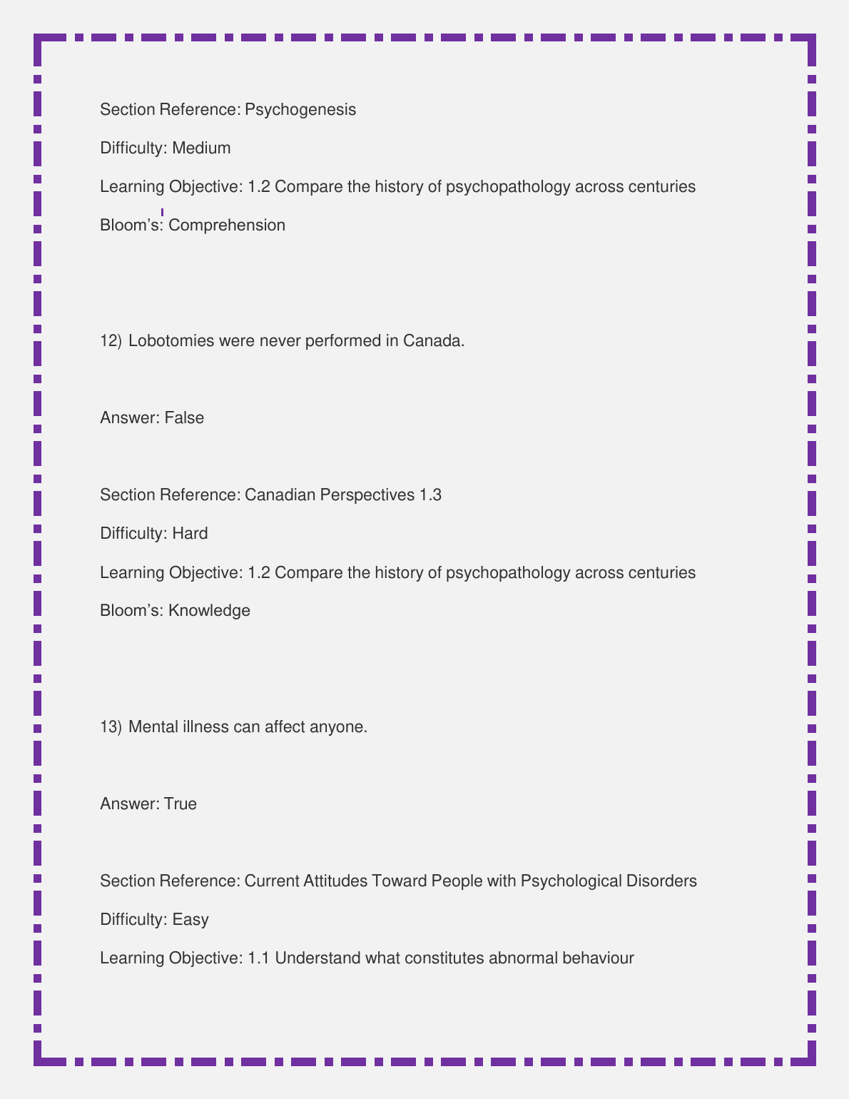 Test Bank for Abnormal Psychology, 6th Canadian Edition by Gordon L. Flett, Nancy L. Kocovski, Gerald C. Davison, and John M. Neale