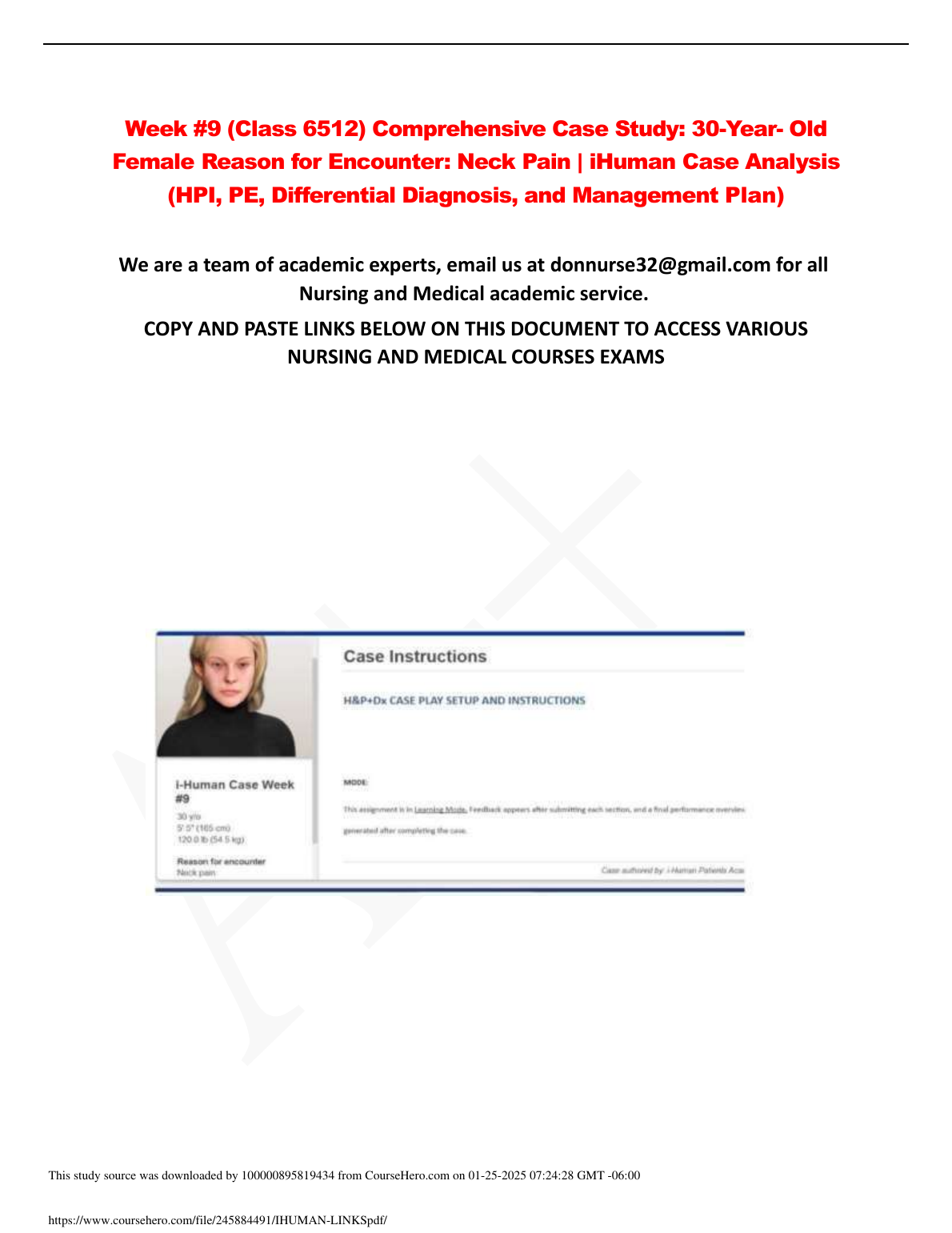 Master iHuman Week 9 (Class 6512): Comprehensive Case Analysis for a 30-Year-Old Female with Neck Pain | Latest 2025/2026 Study Guide to Ace Your Exams