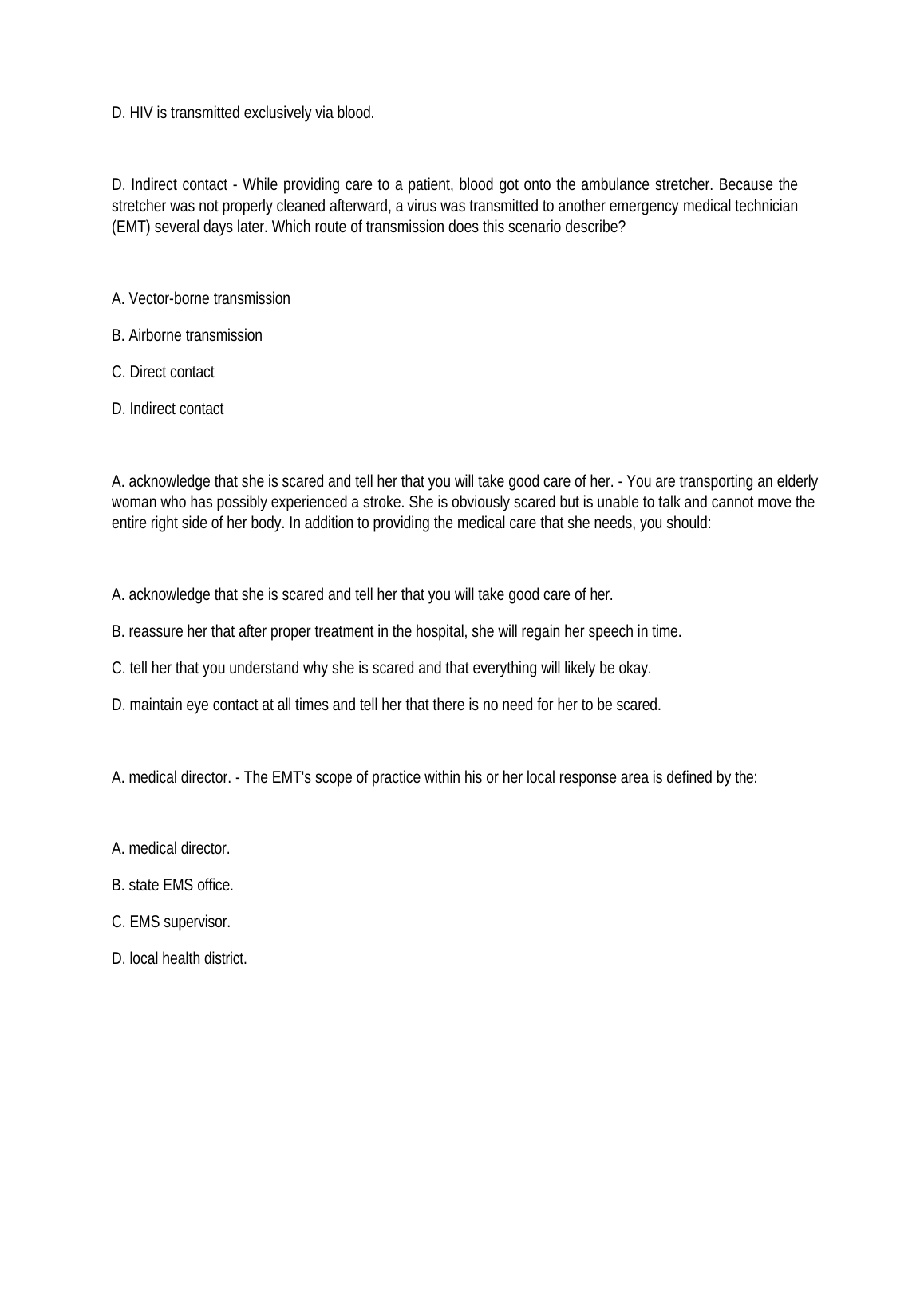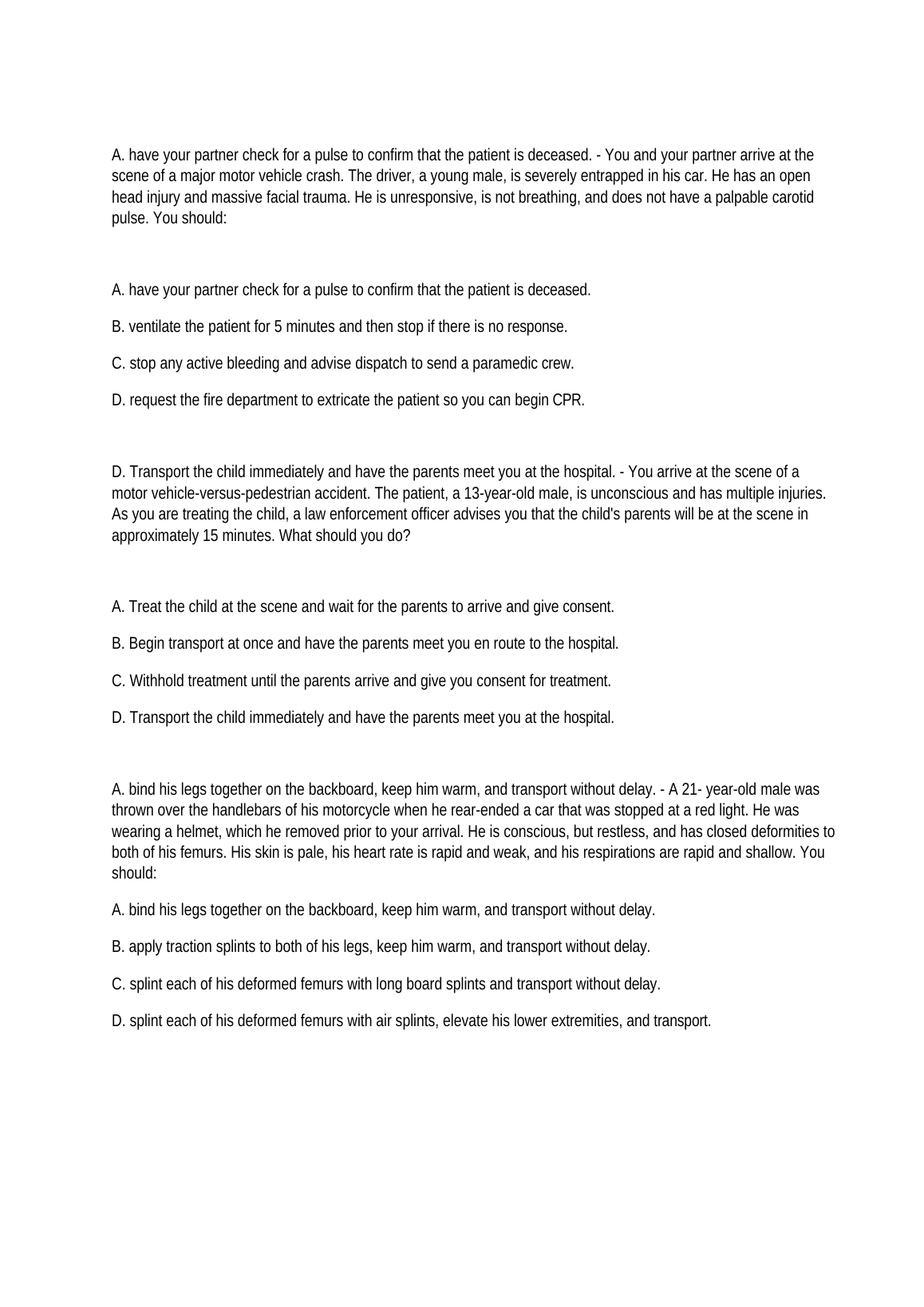 Prepare to excel in your West Coast EMT Final Exam with our latest and most comprehensive study resource for the 2024-2025 academic year. This verified test bank is meticulously compiled with all the potential questions and correct, detailed answers you need to master the course material. Say goodbye to exam anxiety and avoid costly resits. Our guide is structured to provide you with the confidence and knowledge to pass your final exam on the very first try. Get instant access to this essential study tool and take the first step towards your EMT certification success.