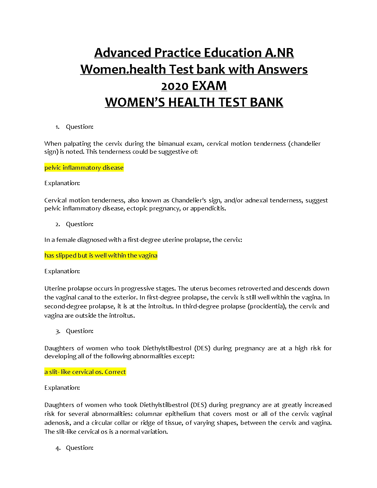 TEST BANK FOR Advanced Practice Education A.NR (WOMEN’S HEALTH)