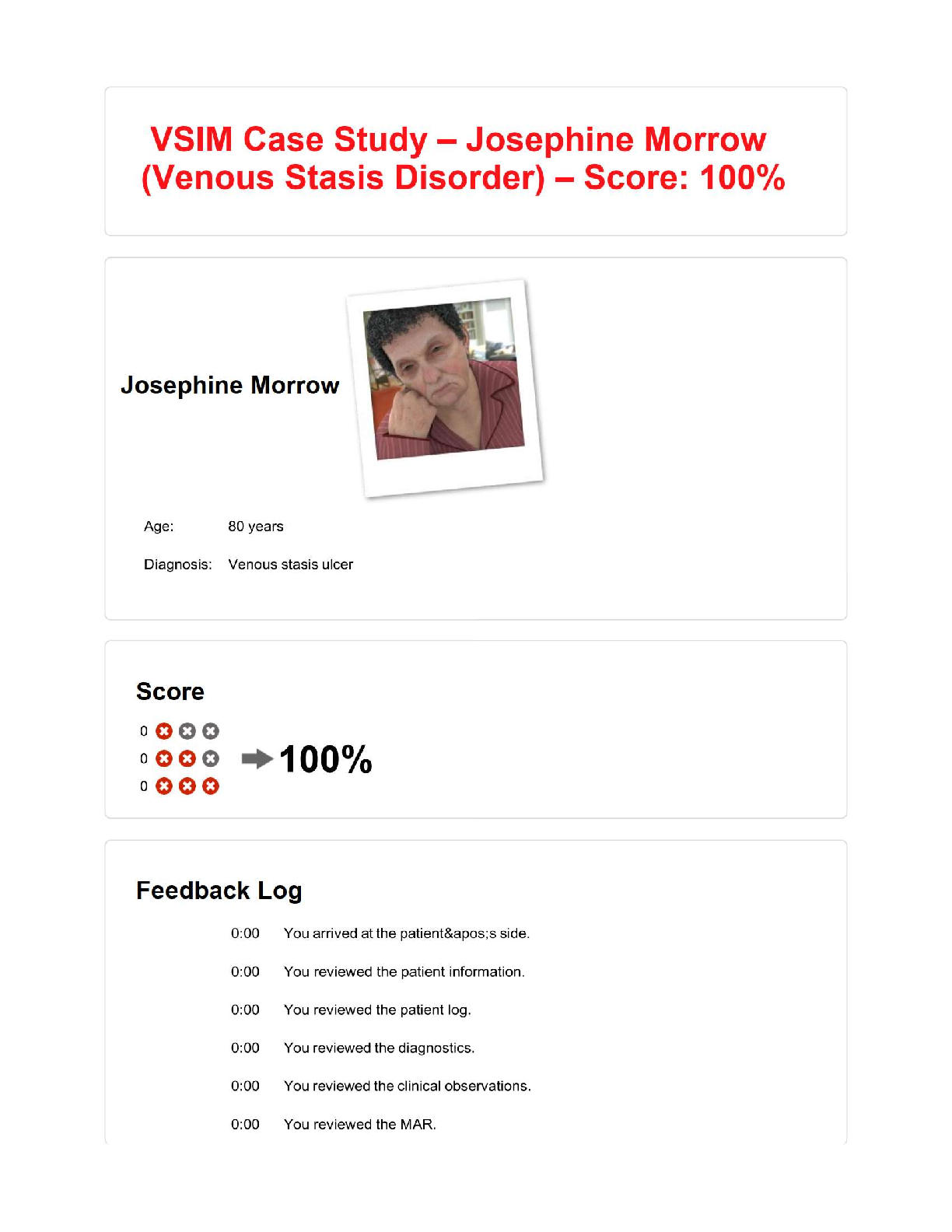 VSIM Case Study Guide: Josephine Morrow (Venous Stasis Disorder) - 100% Score Walkthrough for 2025/2026 | Pass First Try