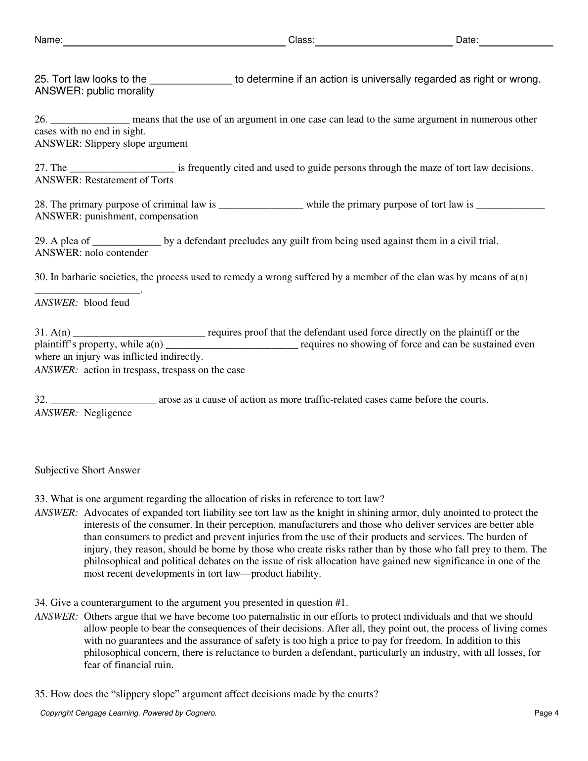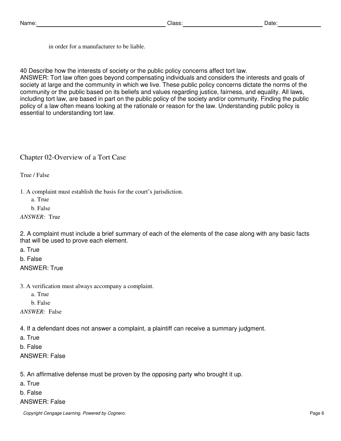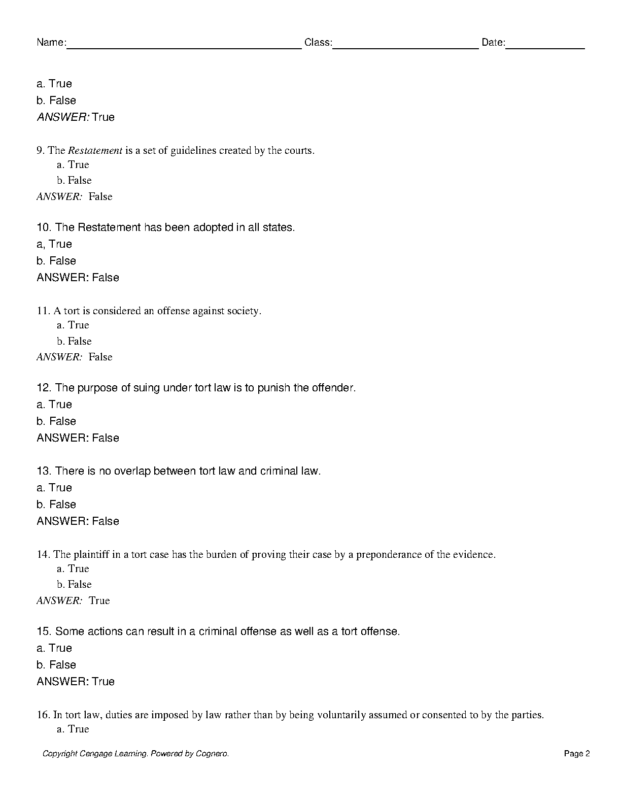 Test Bank for Tort Law, 7th Edition by J. Stanley Edwards, Traci L. Cull & Stephanie R. B. D. Showalter (Chapters 1-19 Q&A)