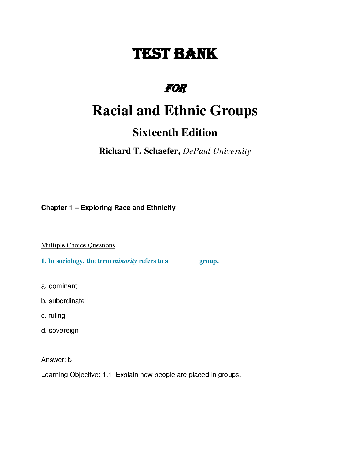 Test Bank for Racial and Ethnic Groups, 16th Edition by Richard T. Schaefer