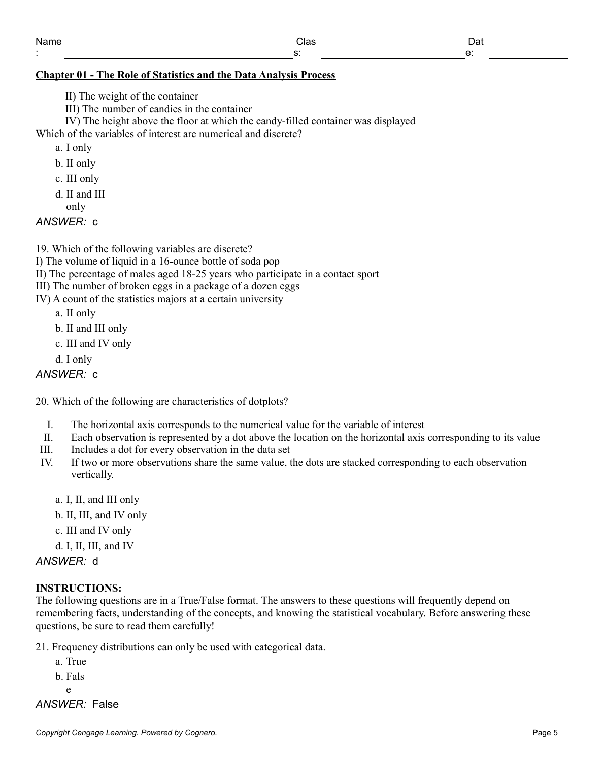 Test Bank for Introduction to Statistics and Data Analysis, 7th Edition by Roxy Peck, Chris Olsen, and Jay L. Devore