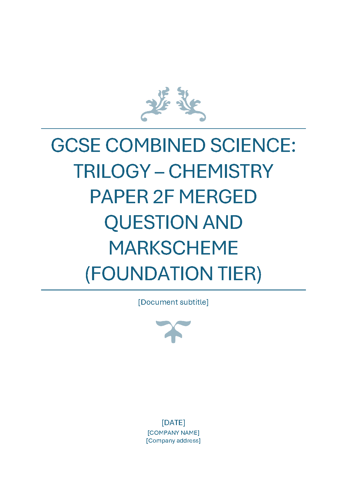 Get exam-ready with our comprehensive resource for the AQA GCSE Combined Science: Trilogy – Chemistry Paper 2F (Foundation Tier). This downloadable guide features the official question paper merged seamlessly with the complete mark scheme, providing an all-in-one study tool. Updated for the 2025/2026 academic year, this resource is expertly designed to help you master key concepts, understand the marking criteria, and practice with real exam-style questions. Boost your confidence and aim for success on your first try. Avoid resits by preparing with the best materials available for your AQA Chemistry exam.