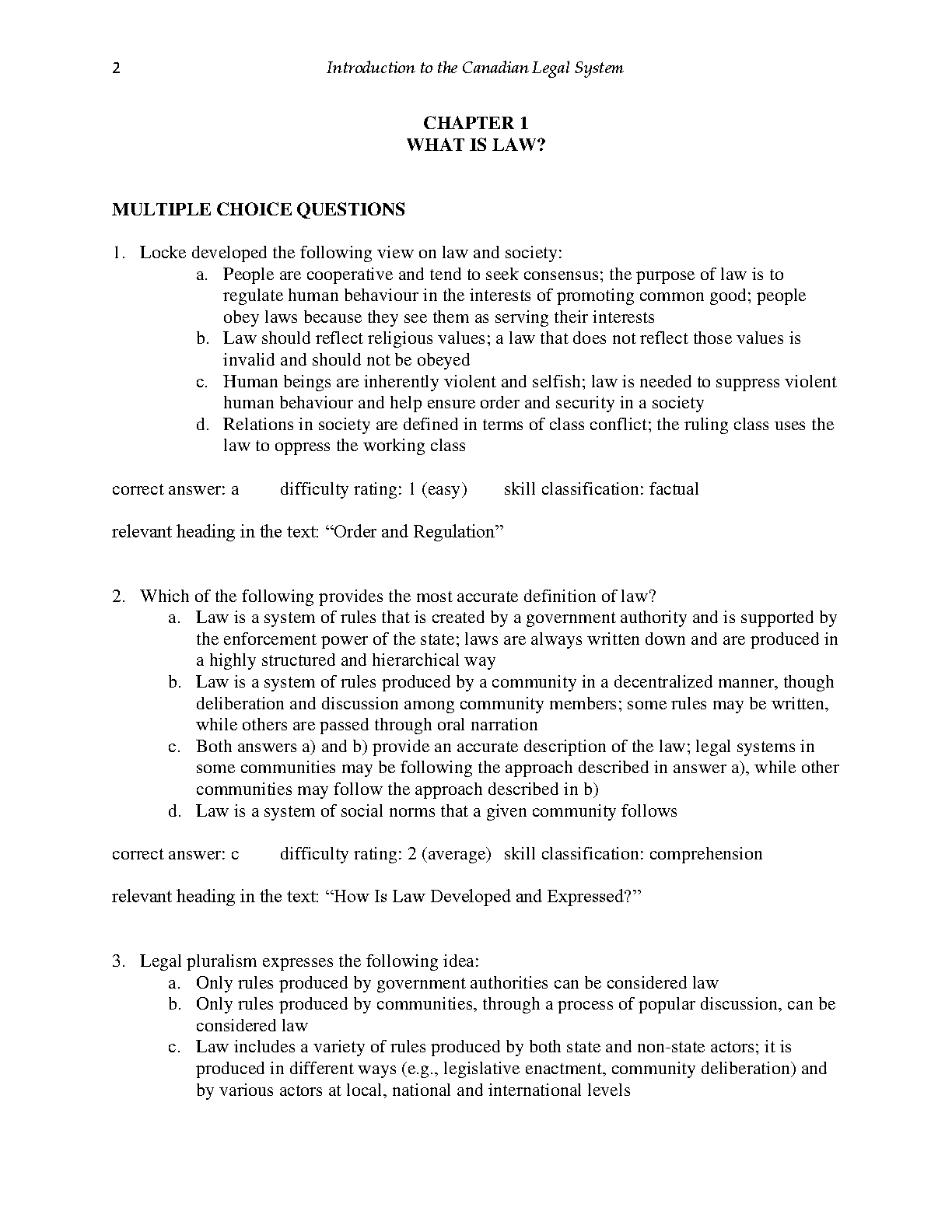 Test Bank for Introduction to the Canadian Legal System, 2nd Edition by Sasha Baglay, Philip Bryden