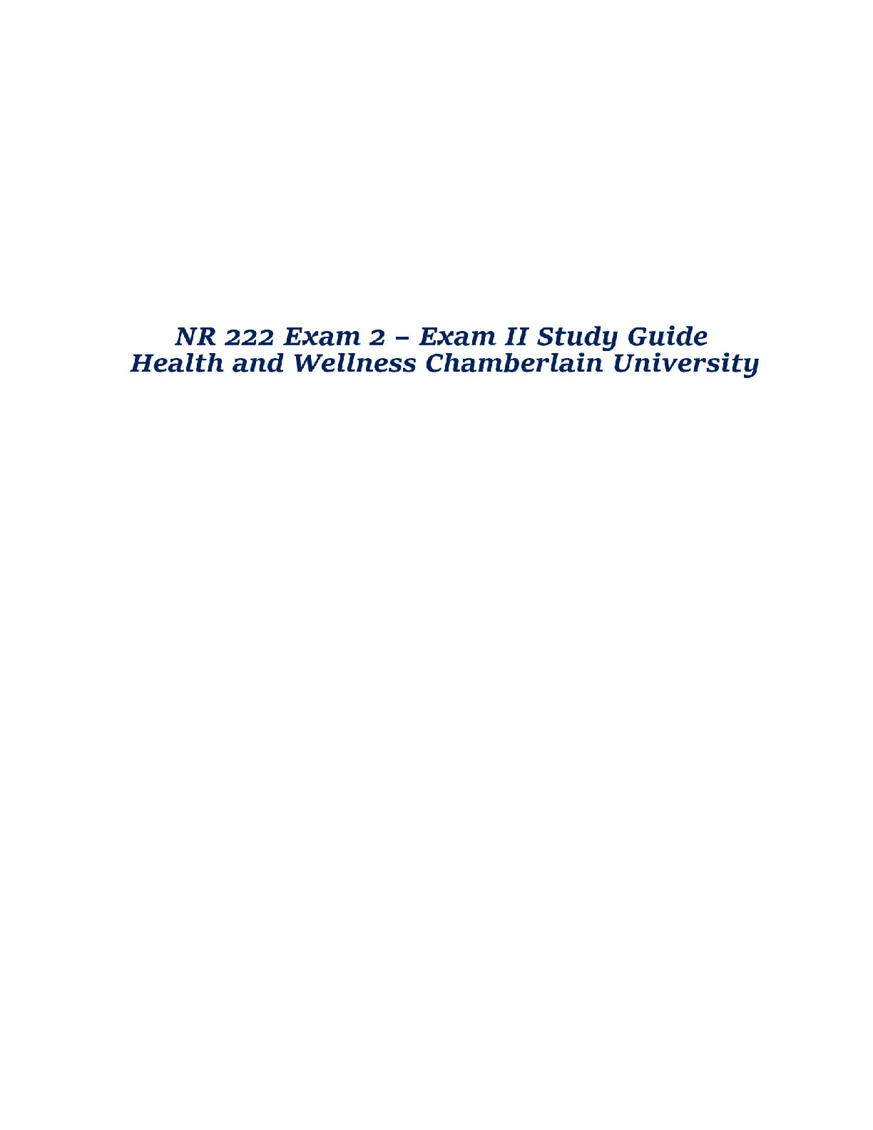 NR 222 Exam 2 Study Guide: Health and Wellness (Chamberlain) - Updated 2025/2026 Guide to Ace Your Exam & Avoid Resits