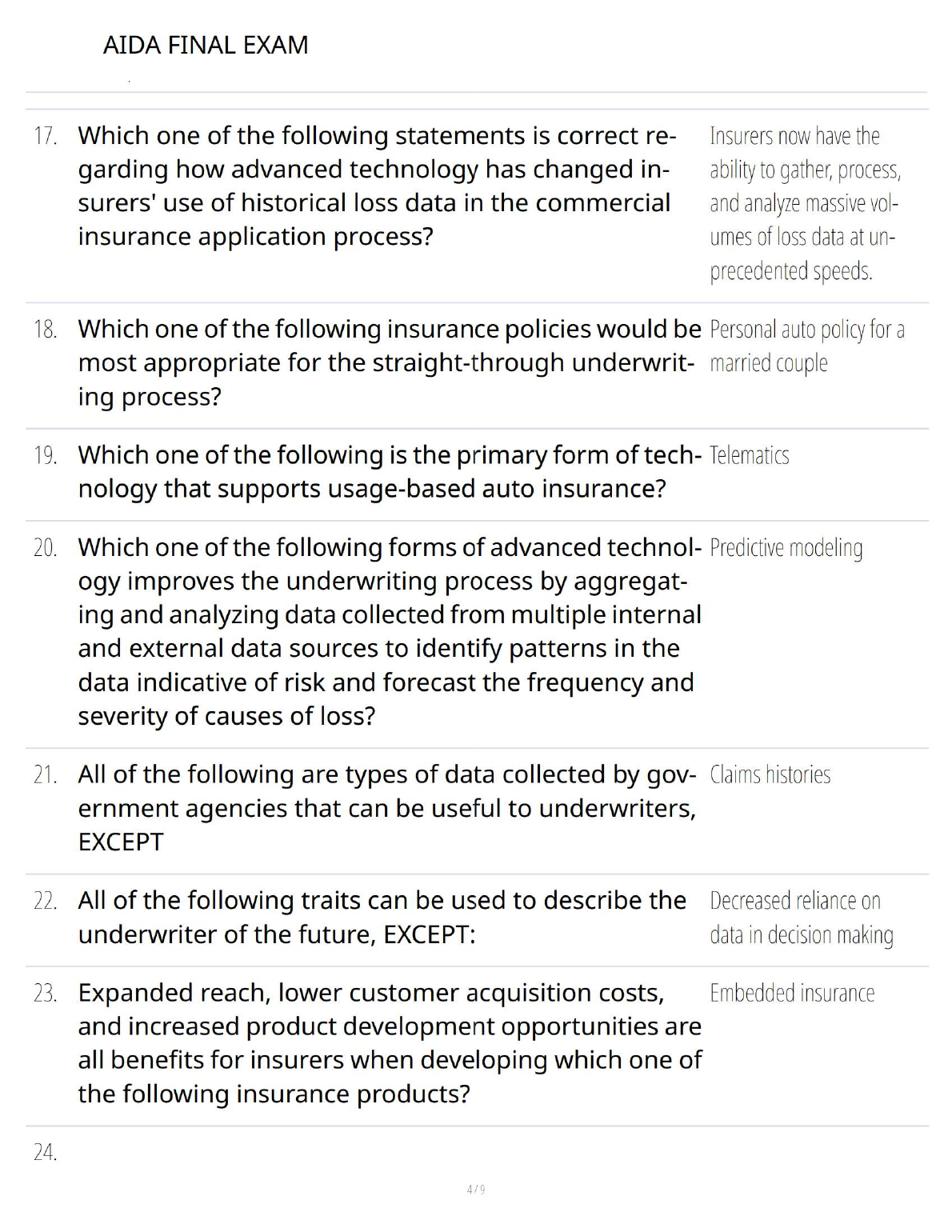 Ace your Associate in Insurance Data Analytics (AIDA) certification with our ultimate success guide, updated for the 2025/2026 academic year. This comprehensive test bank features a complete collection of exam-style questions and verified answers, meticulously compiled to cover all critical topics. From data visualization techniques like scatterplots and pivot tables to understanding different data types and their application in the insurance industry for fraud detection, this study guide has everything you need. Prepare effectively, master the core concepts, and pass your AIDA final exam on the first attempt.
