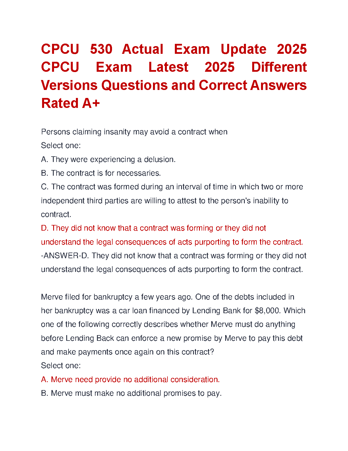 Ace your CPCU 530 exam with our premier test bank, updated for the 2025/2026 academic year. This comprehensive resource features a wide array of A+ graded questions and verified answers, covering all essential topics in the Legal and Regulatory Environment. Designed to mirror the actual exam, this study guide is your key to mastering complex legal concepts and passing on your very first attempt, eliminating the need for costly resits. Get the confidence you need to succeed!