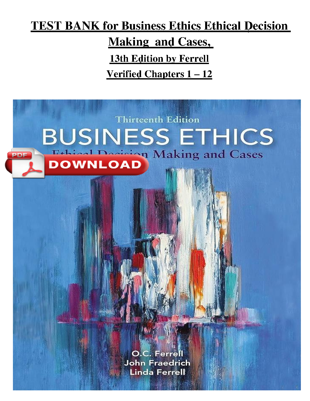 Test Bank for Business Ethics: Ethical Decision Making and Cases, 13th Edition by O.C. Ferrell, John Fraedrich, and Linda Ferrell