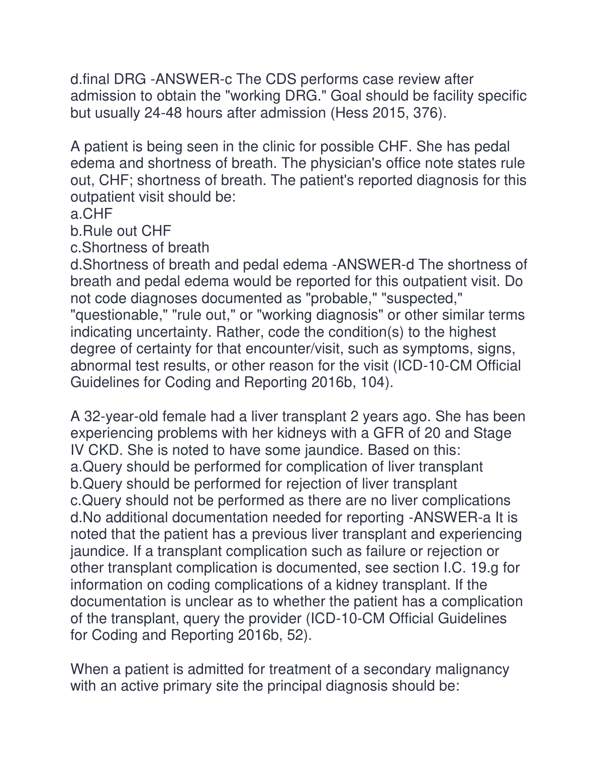 Ace your Certified Documentation Integrity Practitioner (CDIP) exam on the first try with our latest 2025/2026 test bank! This A+ graded resource features a comprehensive collection of practice questions and verified answers, complete with detailed rationales to solidify your understanding. Covering essential topics like ICD-10-PCS coding, official guidelines, and documentation analysis, this study guide is expertly designed to mirror the actual exam. Prepare effectively, boost your confidence, and pass your CDIP certification on your first attempt, avoiding costly resits.