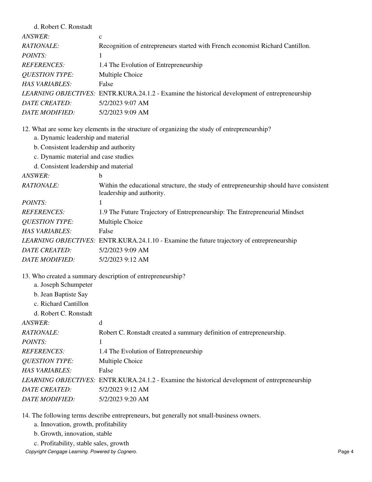 Achieve academic excellence with the complete, verified Test Bank for 'Entrepreneurship: Theory, Process, and Practice', 12th Edition, authored by Donald F. Kuratko. This essential study resource provides an extensive collection of questions and answers covering all chapters of the textbook. Each question is accompanied by a detailed rationale to deepen your understanding of key concepts, from evolutionary development to global phenomena. Perfect for exam preparation, this test bank is designed to help you master the course material and secure top grades.