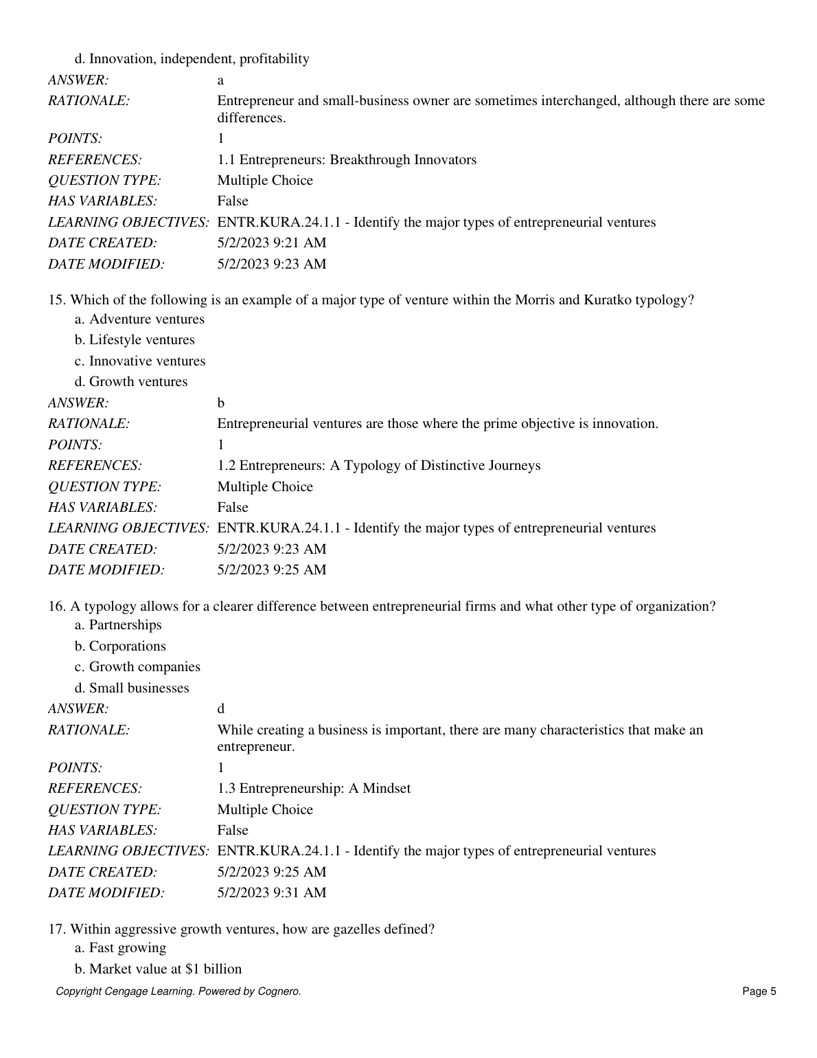 Test Bank for Entrepreneurship: Theory, Process, and Practice, 12th Edition by Donald F. Kuratko - All Chapters Q&A