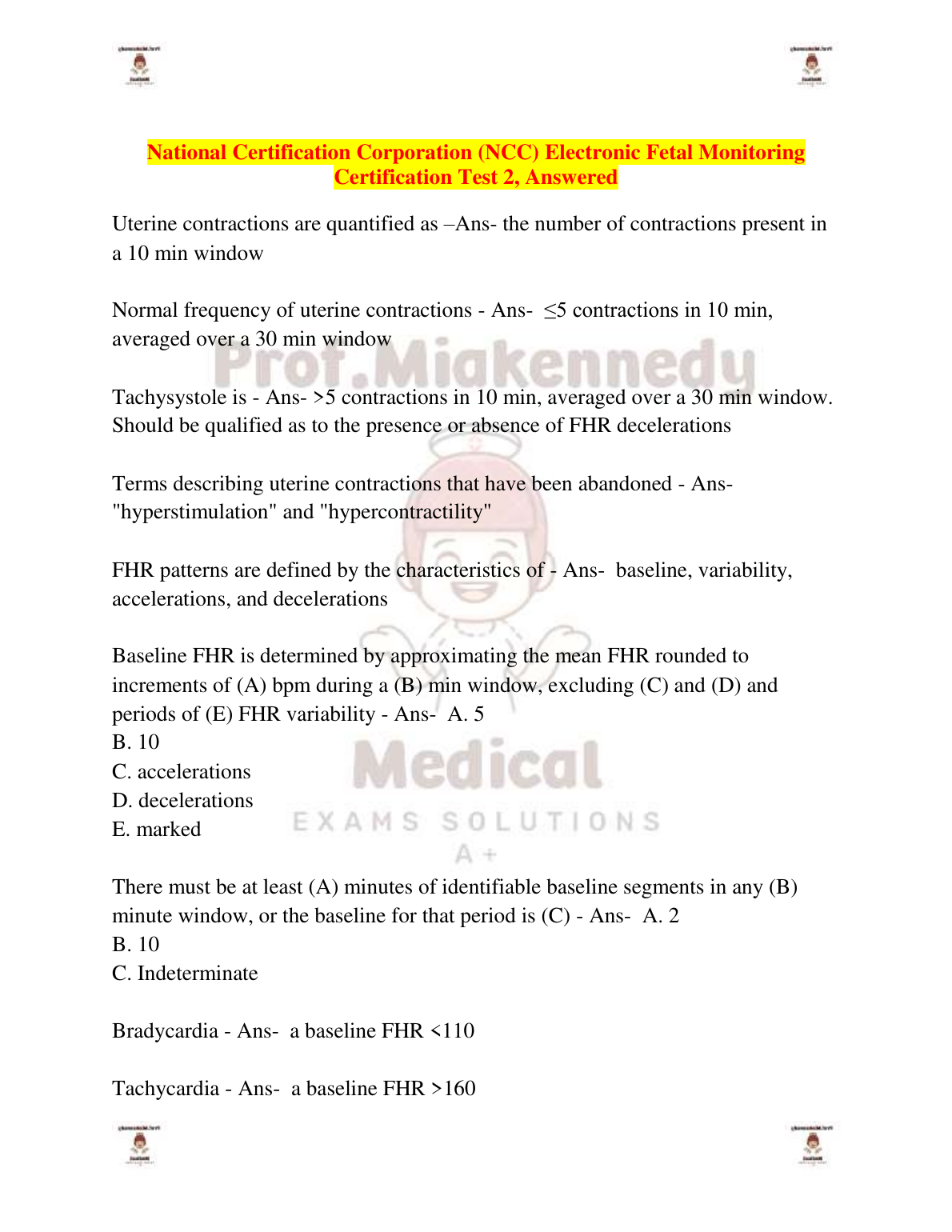 NCC Electronic Fetal Monitoring Certification Test 2 with Verified Answers | Complete Q&A Study Guide to Pass on Your First Try 2025/2026
