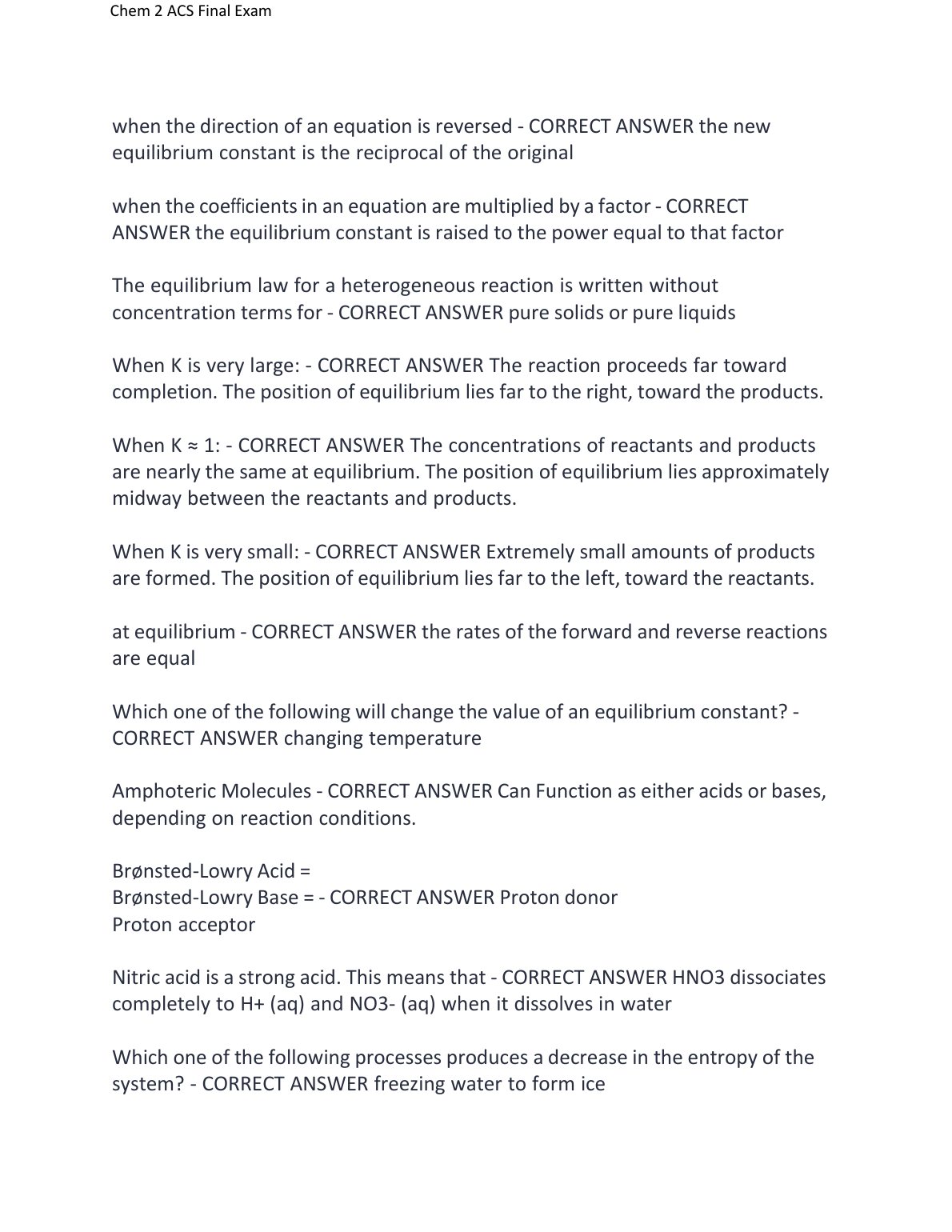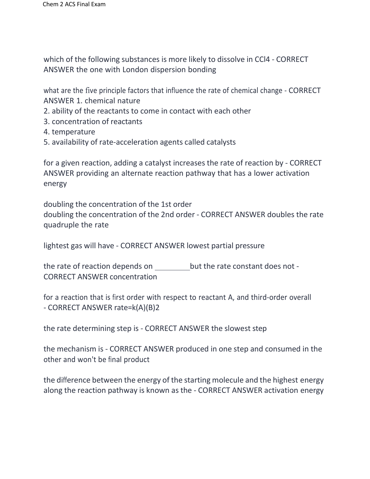 General Chemistry 2 (Chem 2) ACS Final Exam Test Bank with Answers and Solutions | 2025/2026 Edition