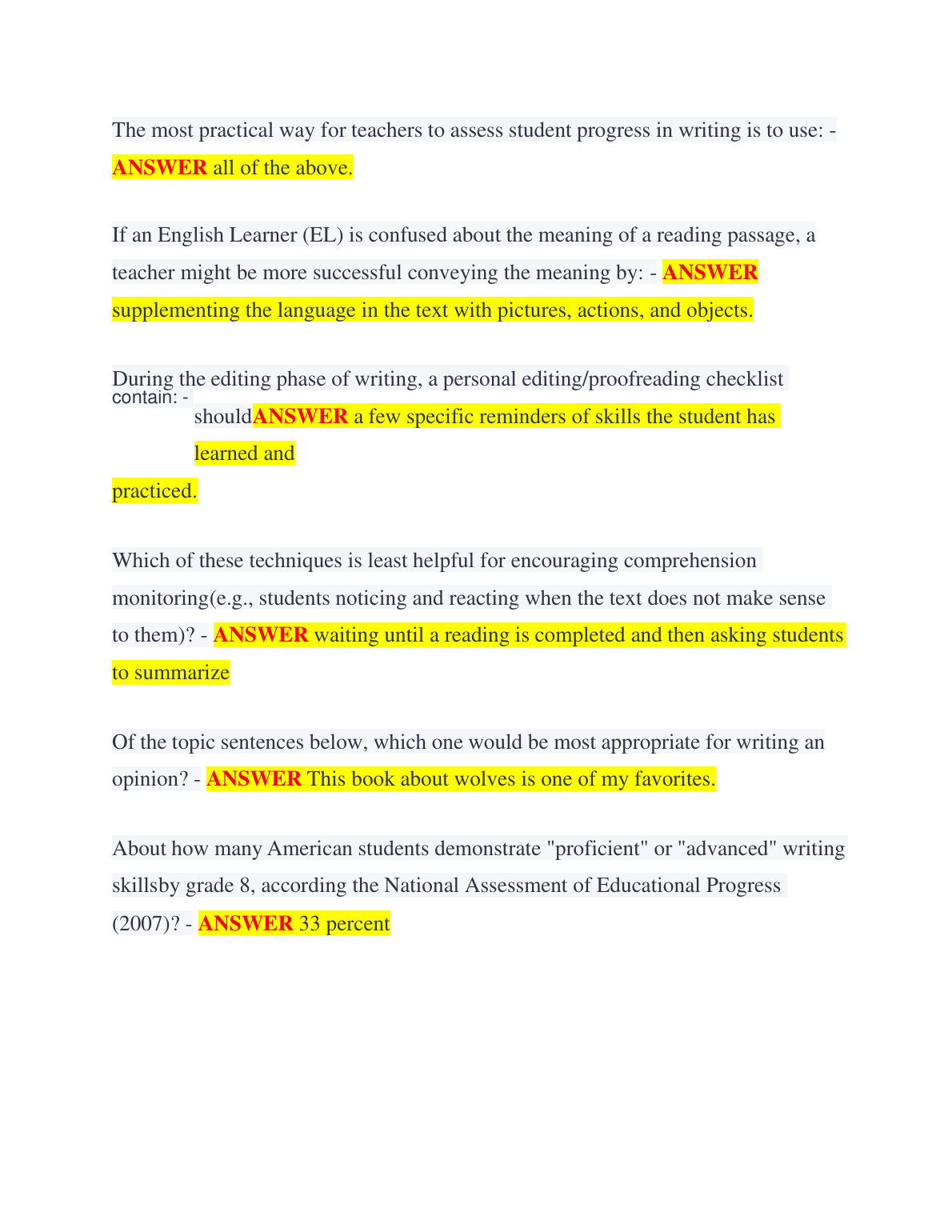 Master LETRS 3rd Edition: Moats & Tolman Units 5-8 Pre & Post Test Bank (Graded A+ Solutions)