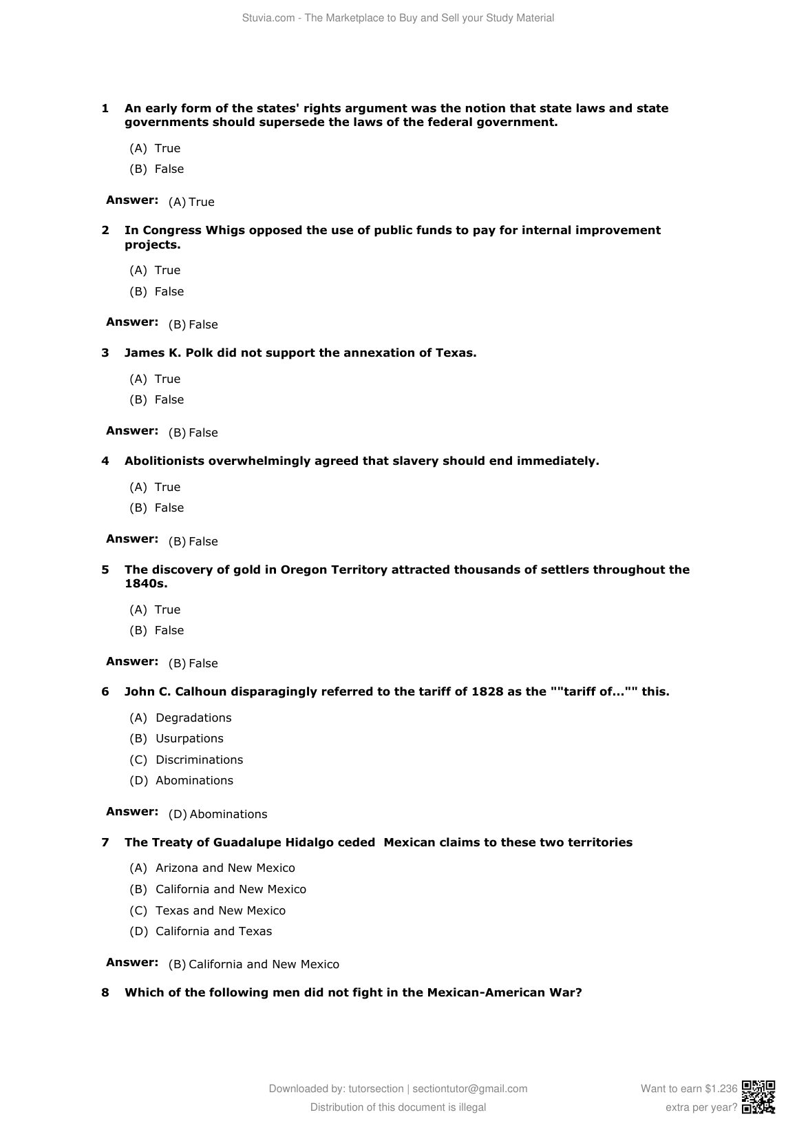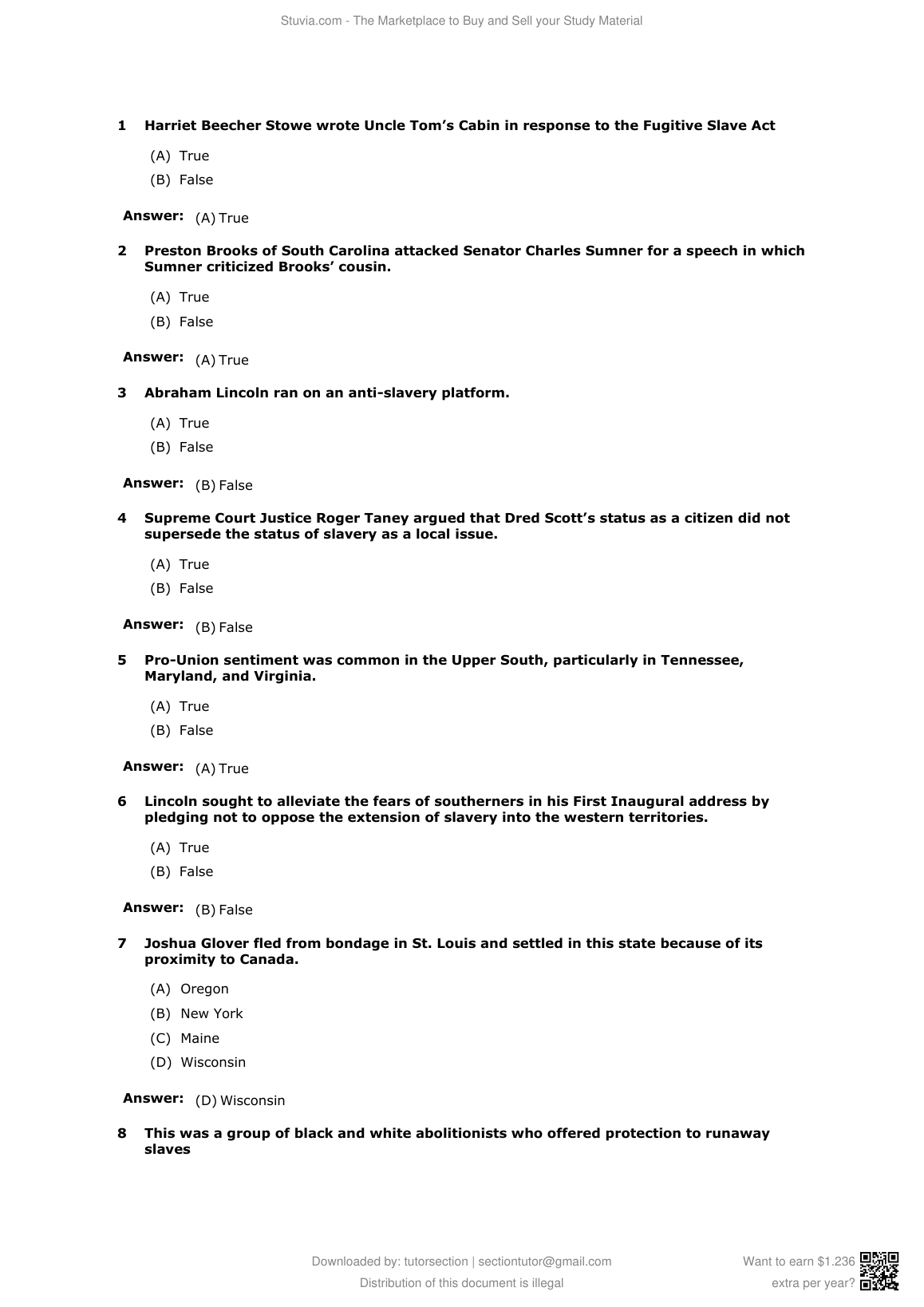 Test Bank for A House Divided: The Civil War and Nineteenth-Century America, 2nd Edition by Jonathan Wells