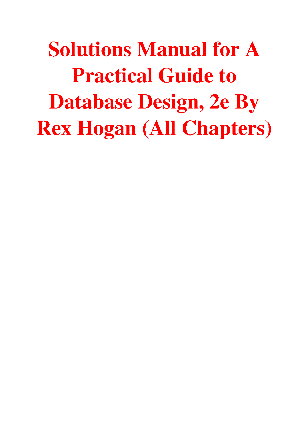 Solutions Manual for A Practical Guide to Database Design, 2nd Edition by Rex Hogan - Complete All Chapters