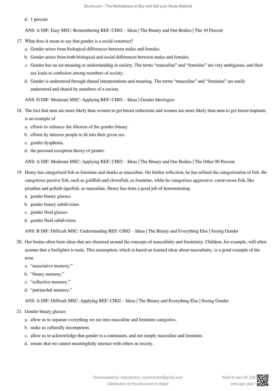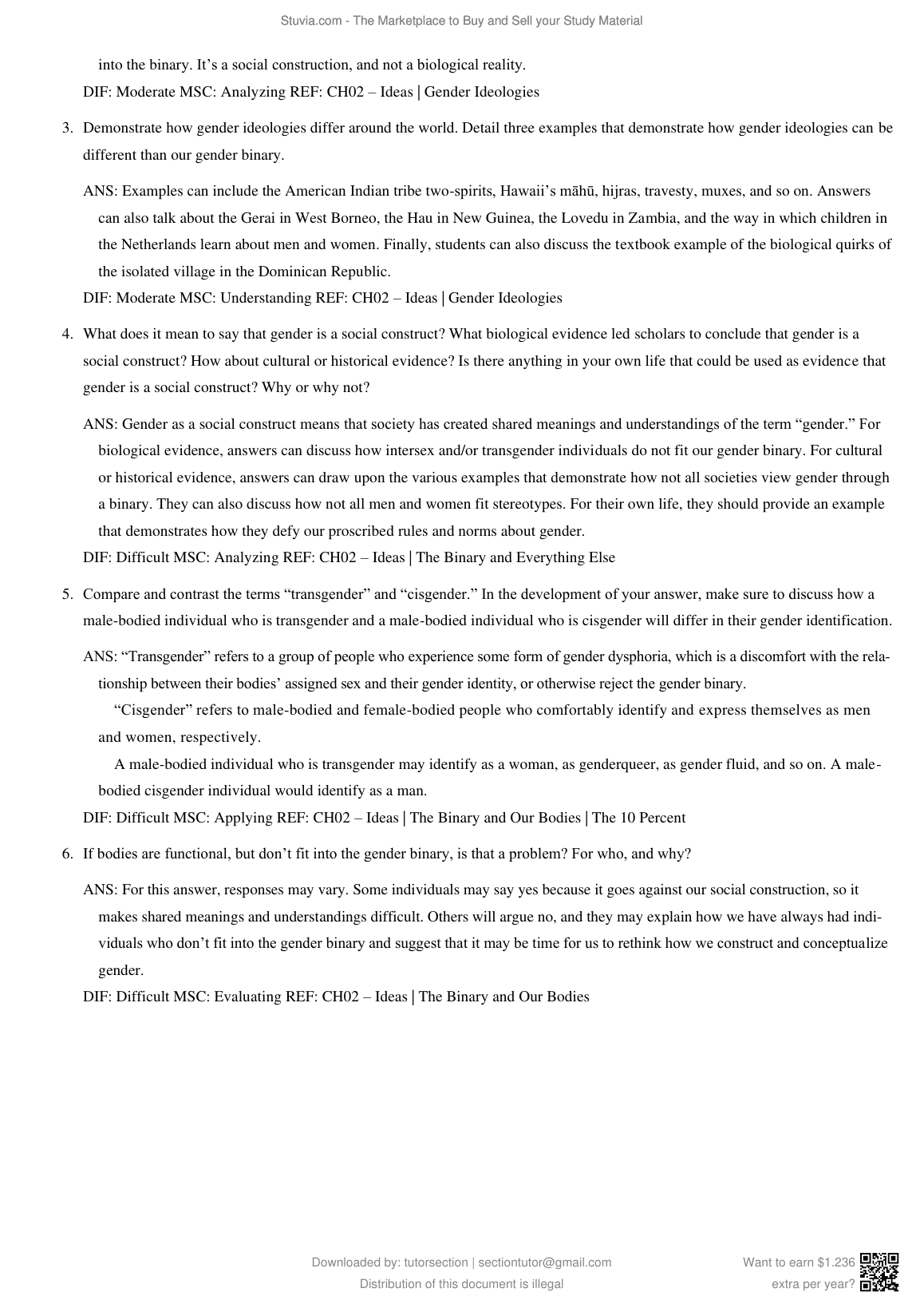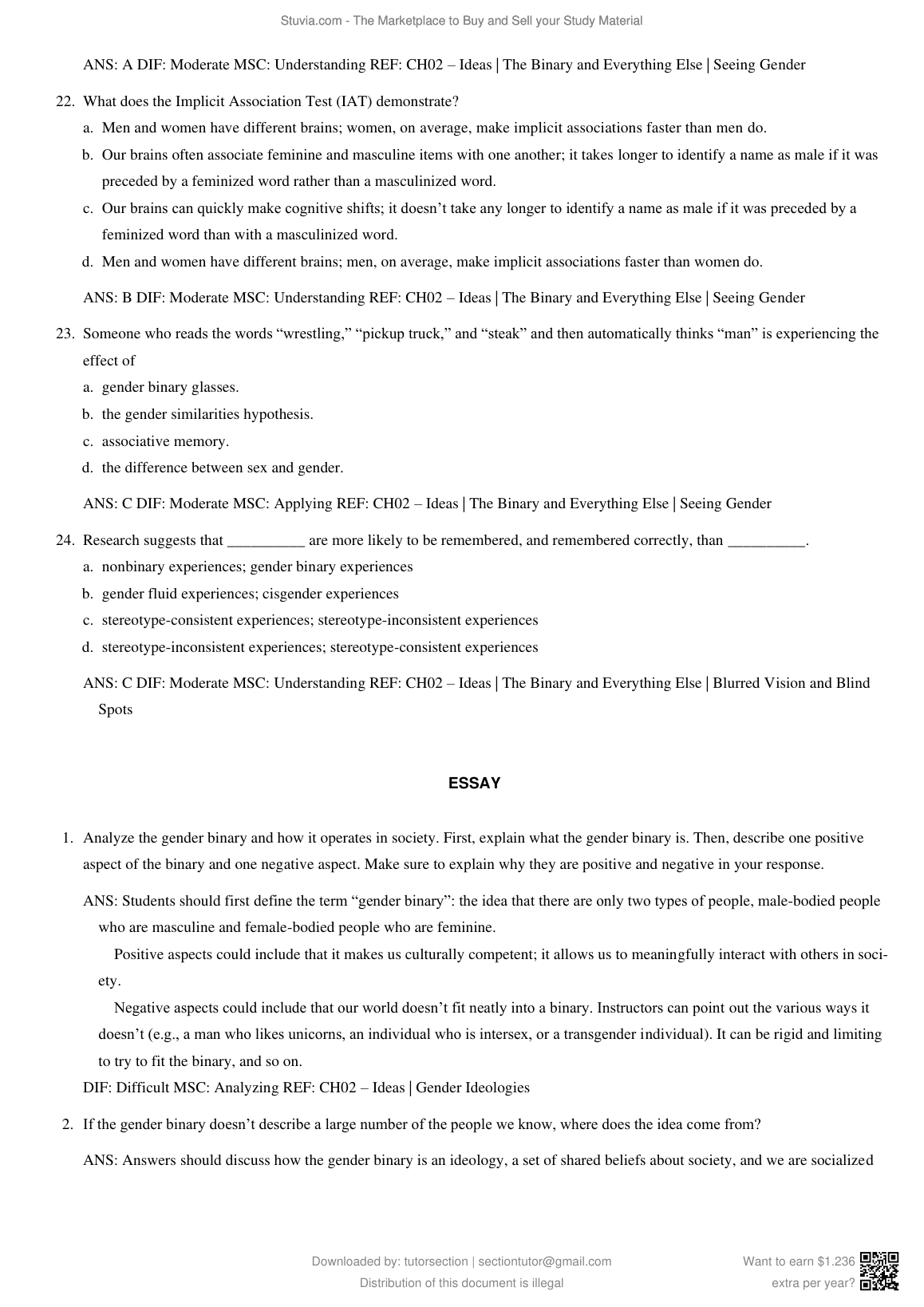 Test Bank for Gender: Ideas, Interactions, Institutions, 2nd Edition by Lisa Wade & Myra Marx Ferree