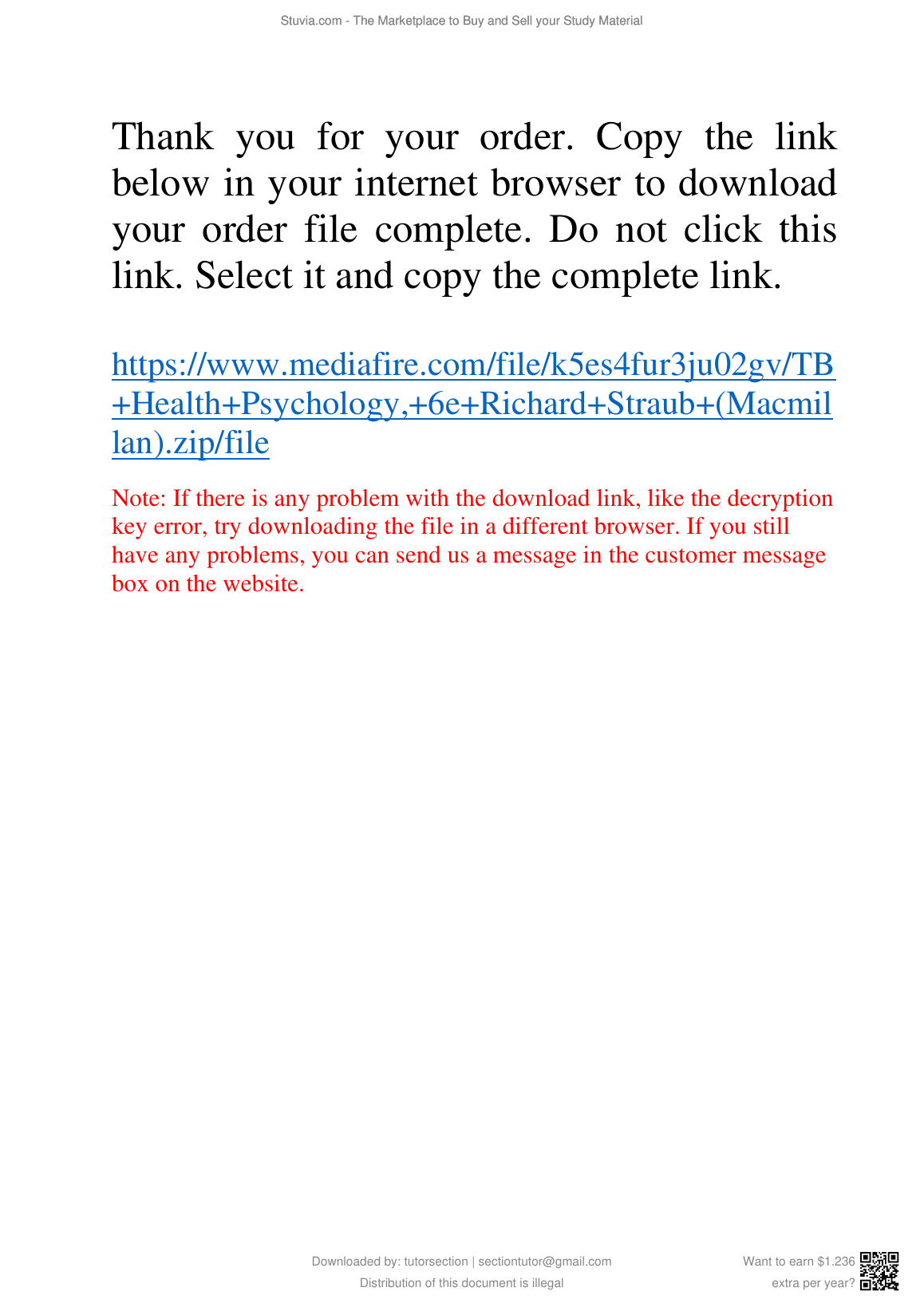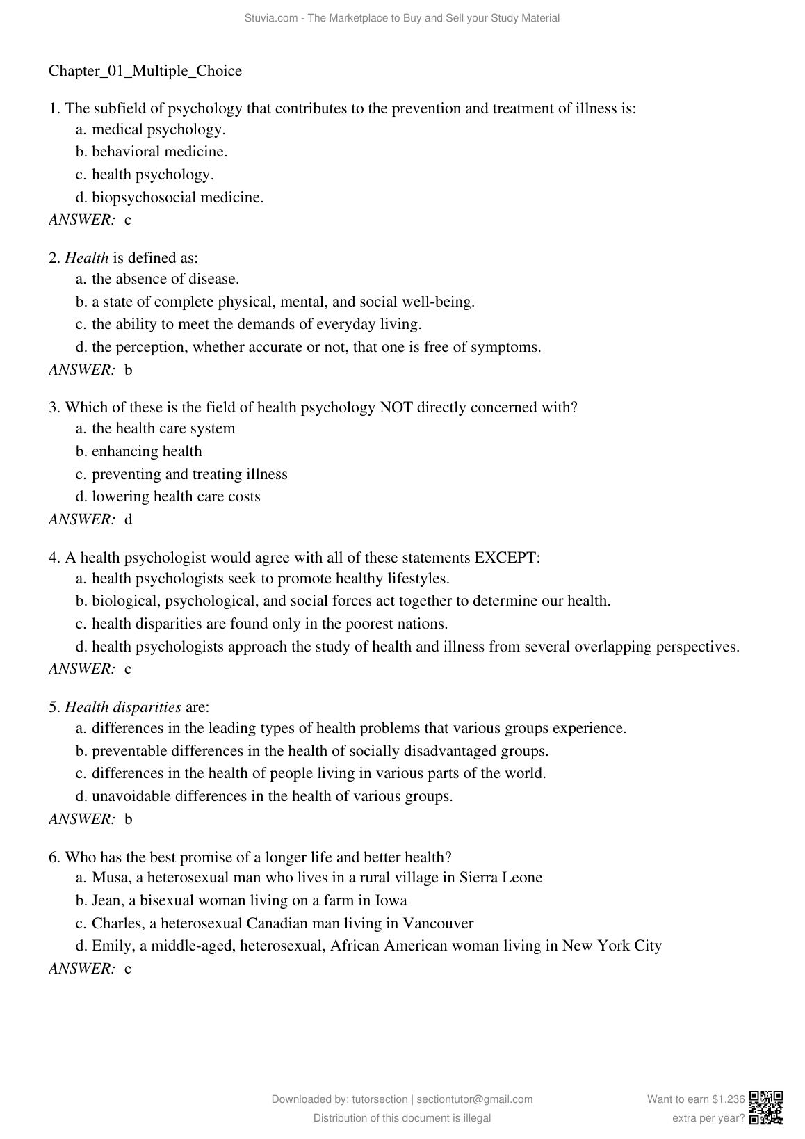 Test Bank for Health Psychology, 6th Edition by Richard O. Straub