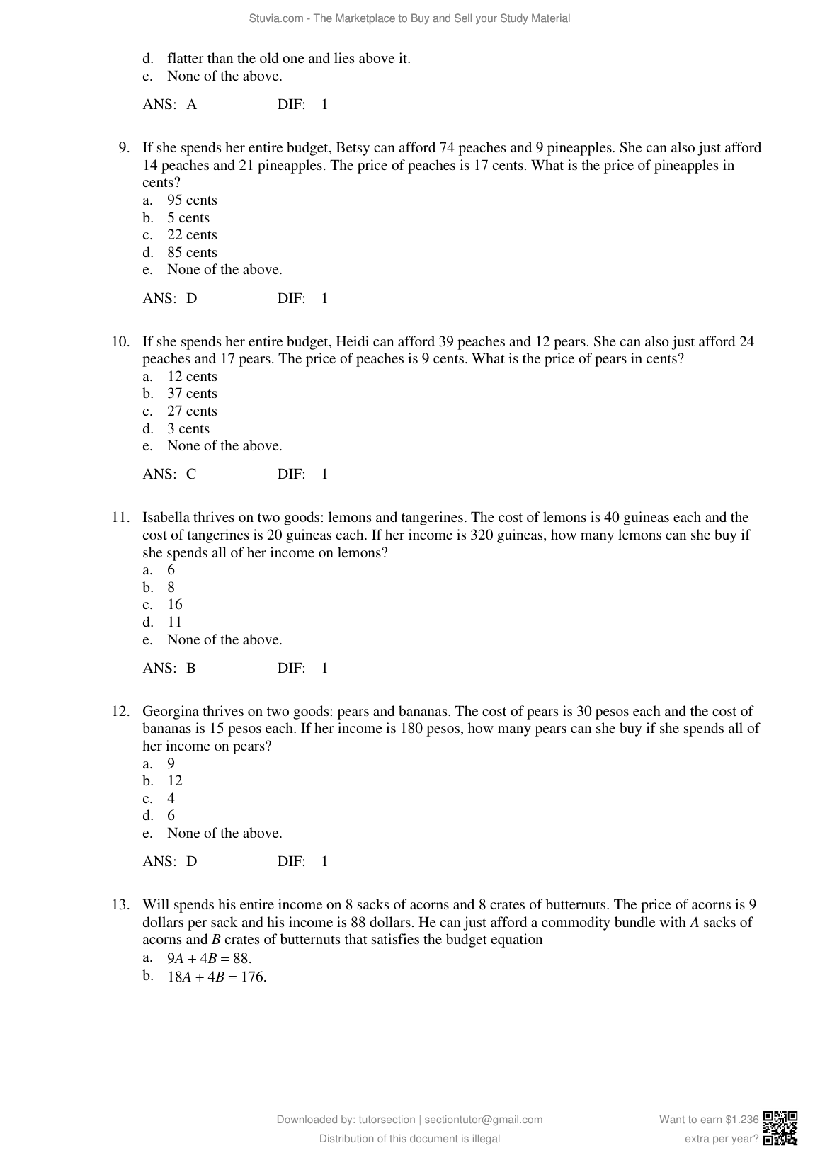 Test Bank for Intermediate Microeconomics: A Modern Approach, 9th Edition by Hal R. Varian