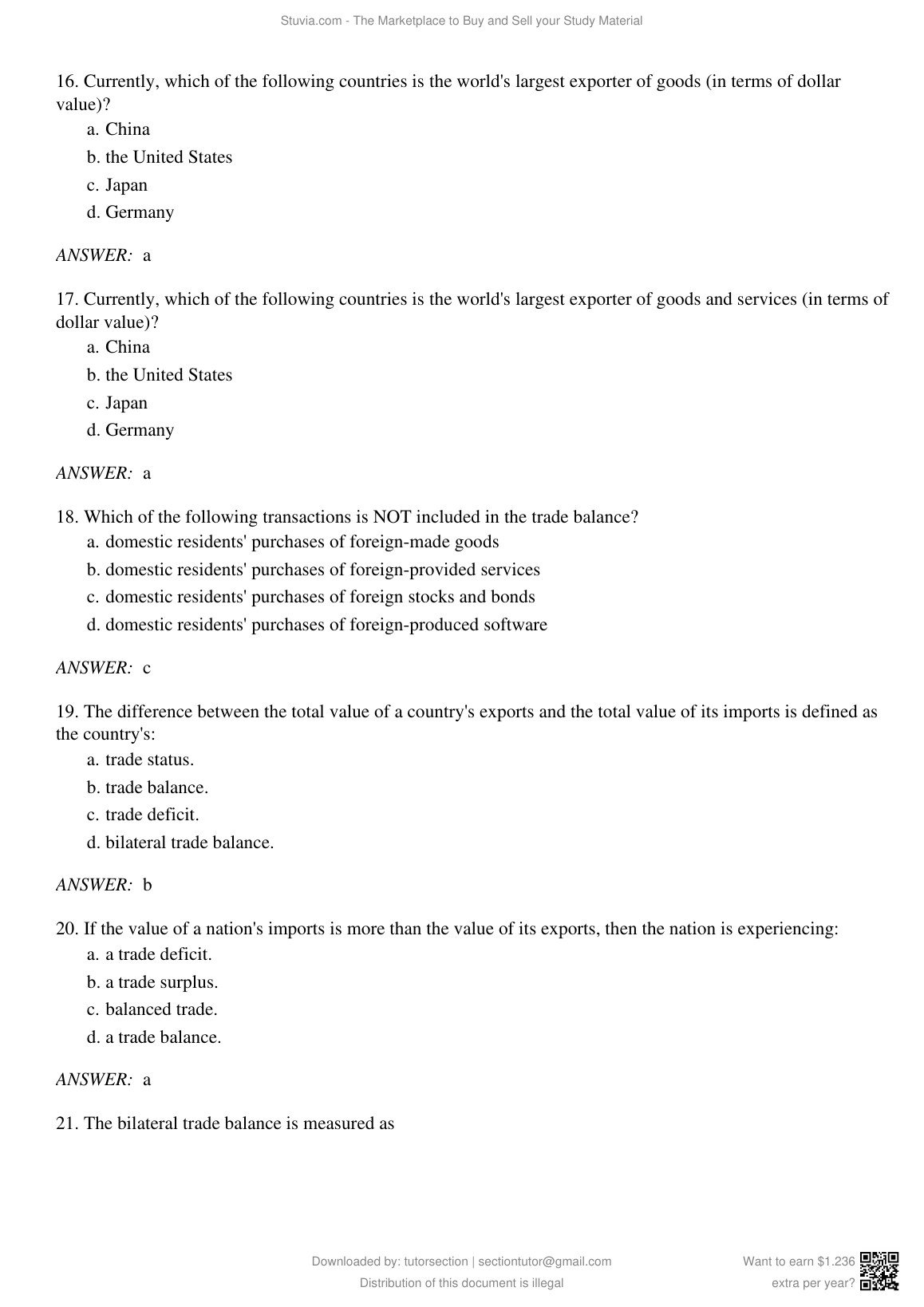 Test Bank for International Trade, 5th Edition by Robert C. Feenstra & Alan M. Taylor (All Chapters)