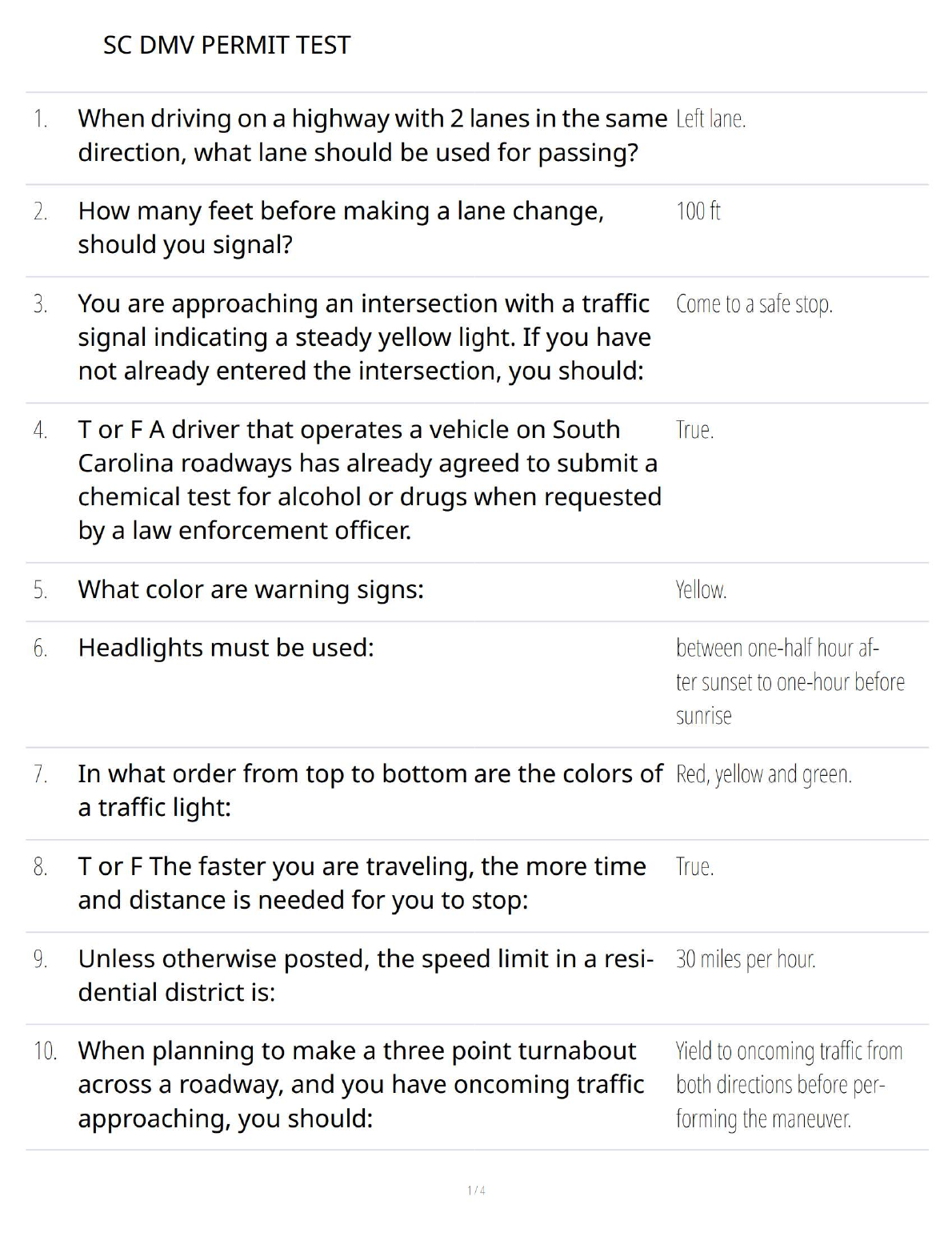 Prepare to ace your South Carolina DMV Permit Test with our comprehensive study guide, fully updated for the 2025/2026 testing season. This resource is expertly crafted to help you master the SC rules of the road and confidently pass your exam on the very first try, eliminating the need for costly and stressful resits. This guide features a complete set of potential exam questions and verified answers covering everything from traffic signals and speed limits to right-of-way rules. Get the knowledge you need to earn your driver's permit successfully.