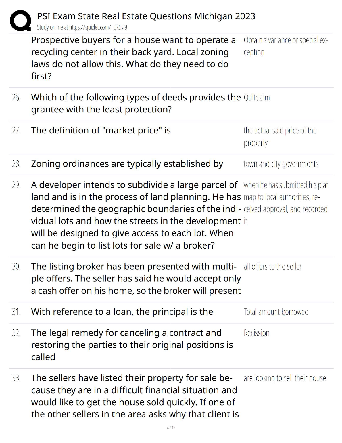 PSI Michigan Real Estate Exam 2025/2026 Test Bank: Updated Practice Questions & Answers to Pass on Your First Attempt