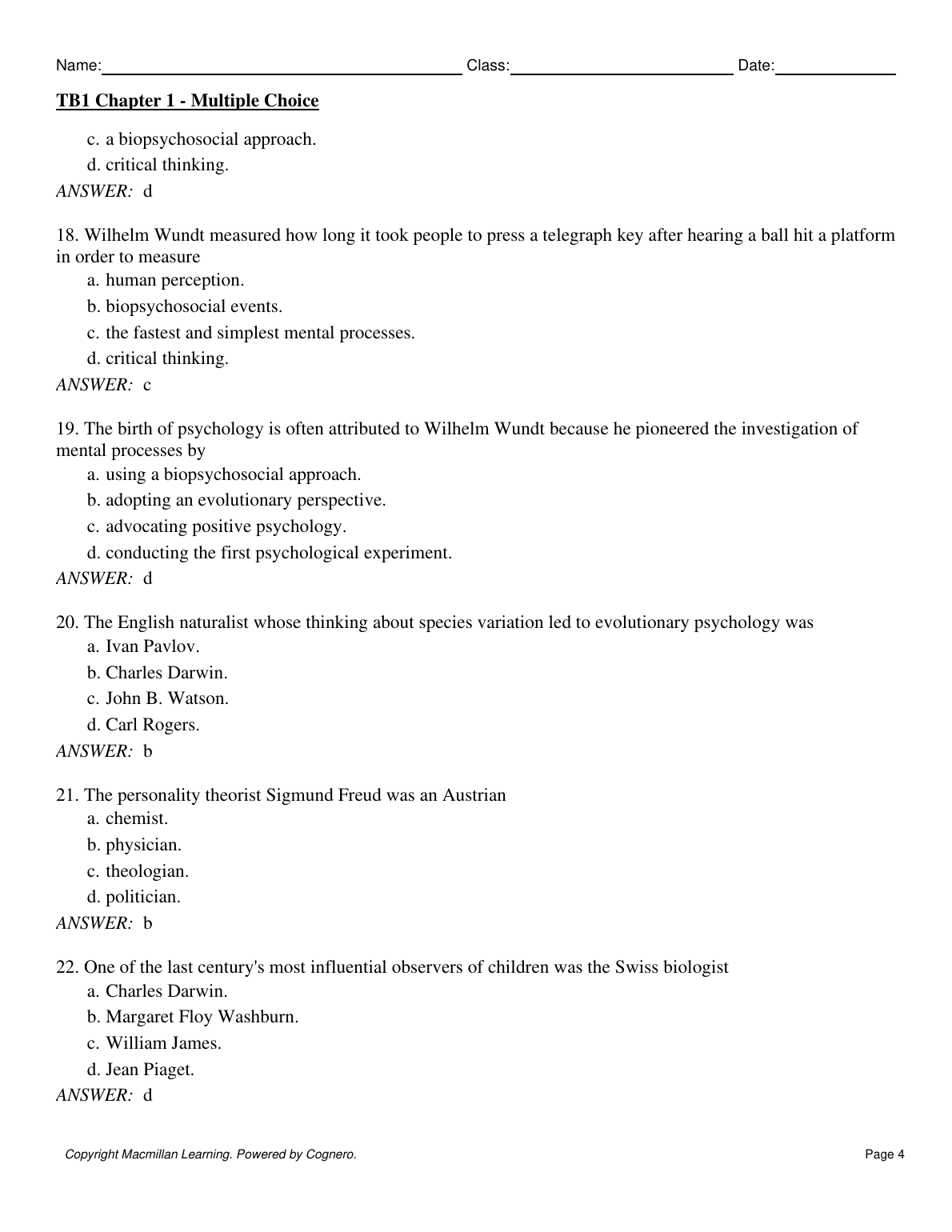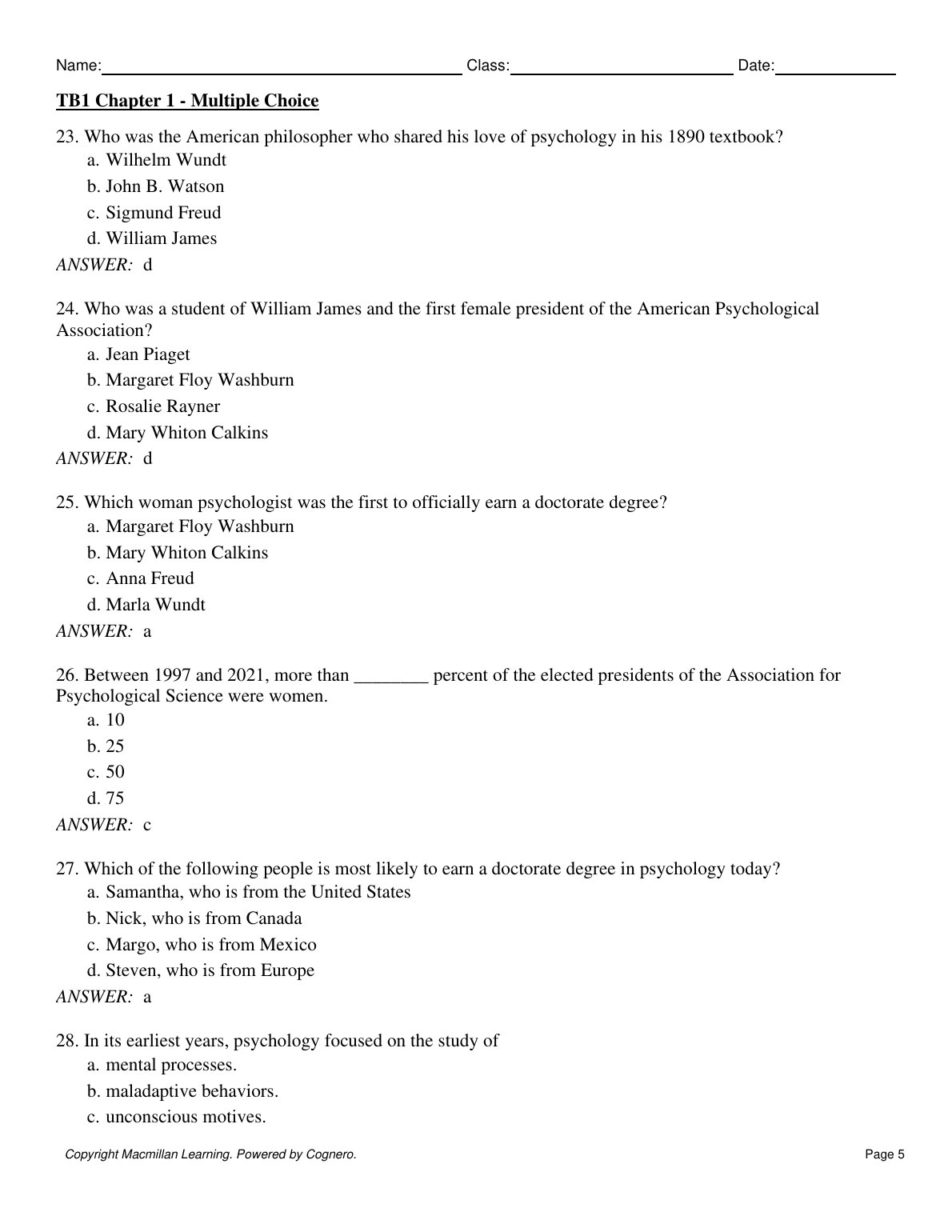 Test Bank for Psychology in Everyday Life, 6th Edition by David Myers and Nathan DeWall (All Chapters, Questions & Answers)