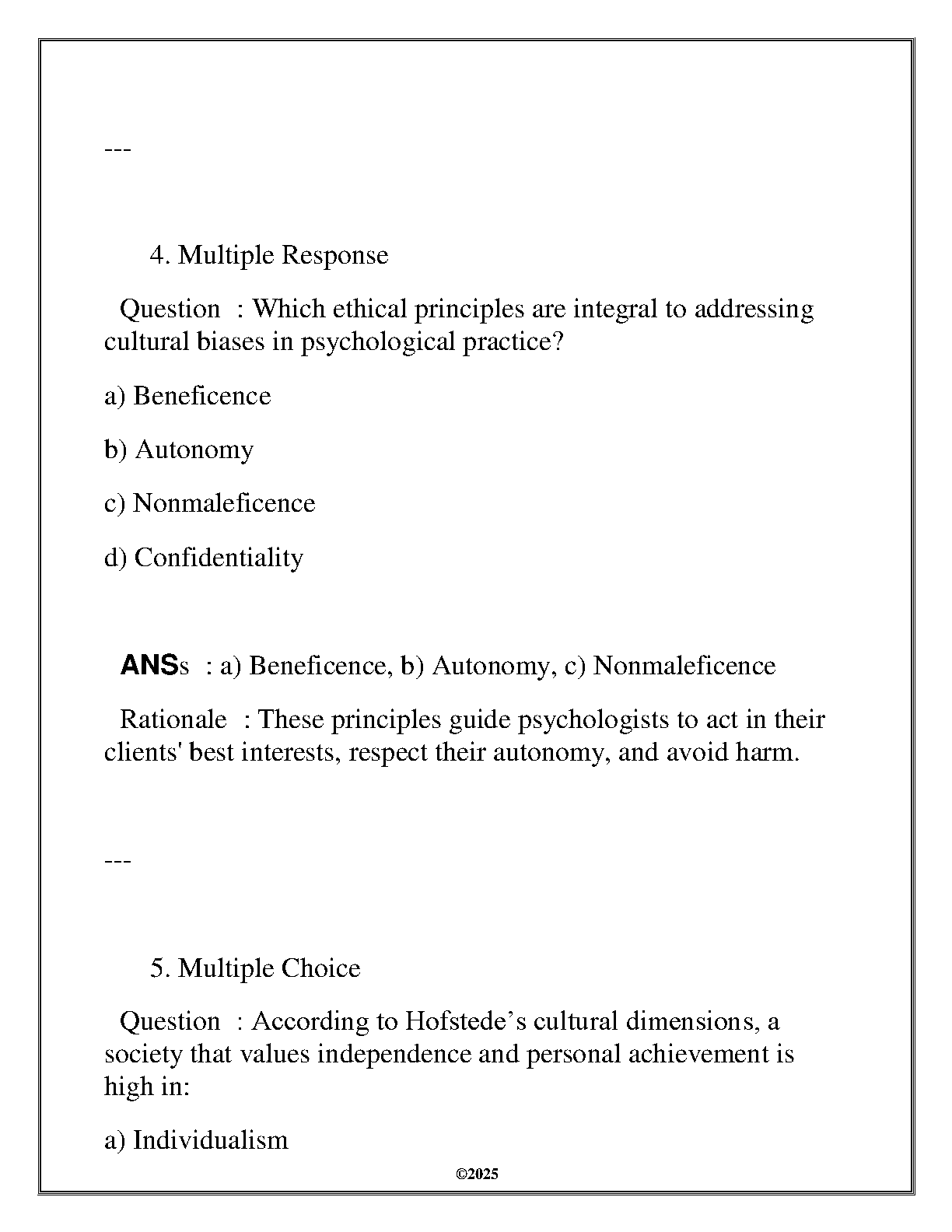 Get ready to excel in your WGU D565 HLTH 3510 Cultural Awareness & Ethics course with this comprehensive Final Assessment (FA) Review for 2025. This exam elaboration provides a full set of verified questions and answers, meticulously compiled to cover all the essential topics you need to know. Master key concepts related to cultural competence and ethical principles in healthcare. This study guide is your ultimate tool to prepare efficiently, boost your confidence, and pass your final exam on the first attempt. Download now to secure your success!