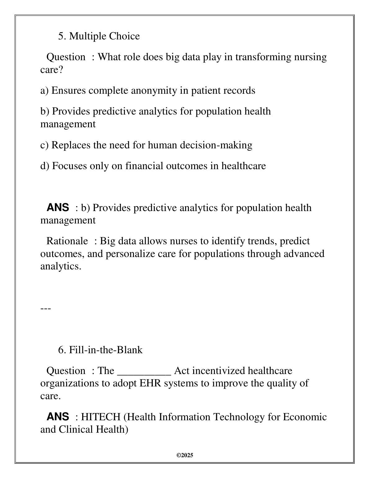 WGU D029 NURS 5206 Informatics for Transforming Nursing Care Test Bank | 2025 FA Review with Verified Questions and Answers