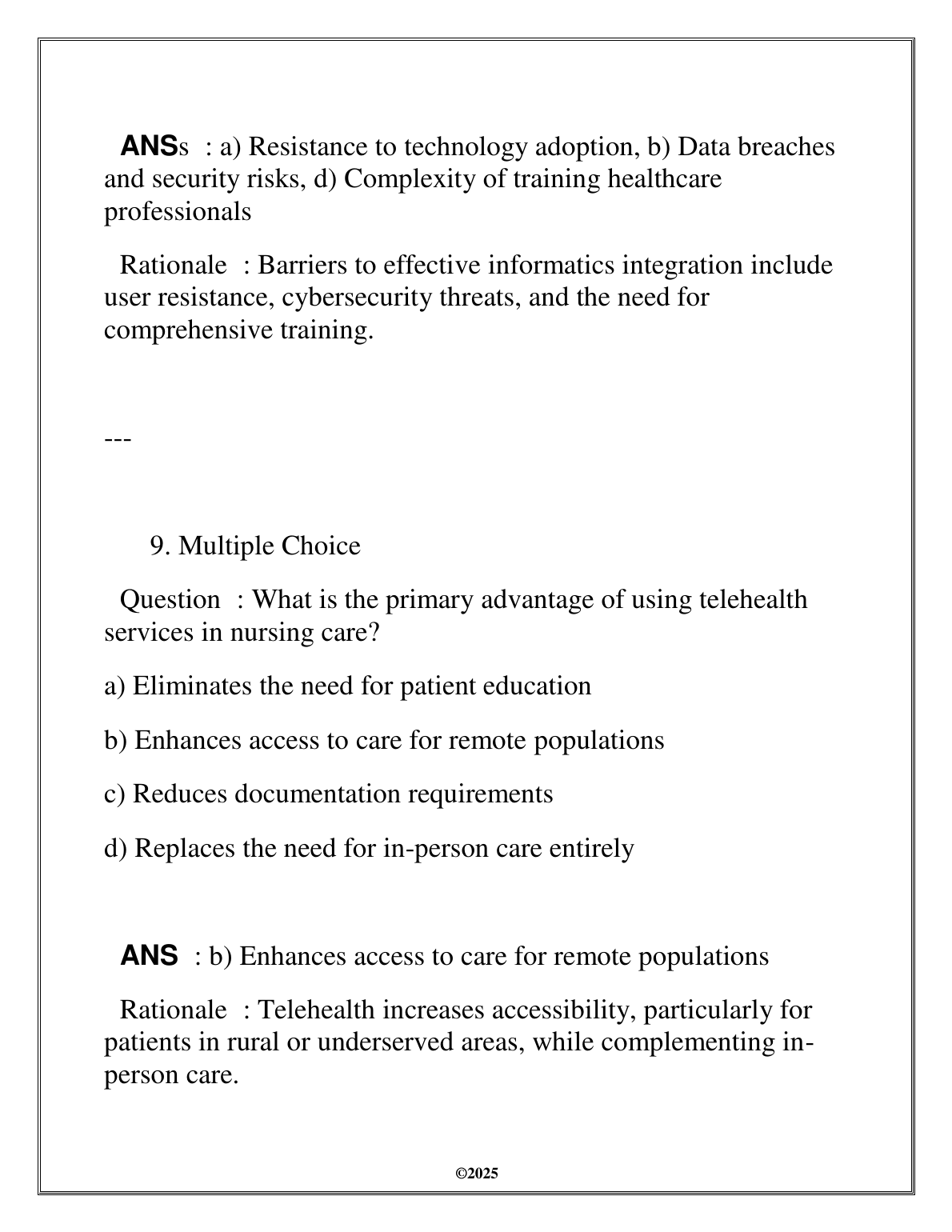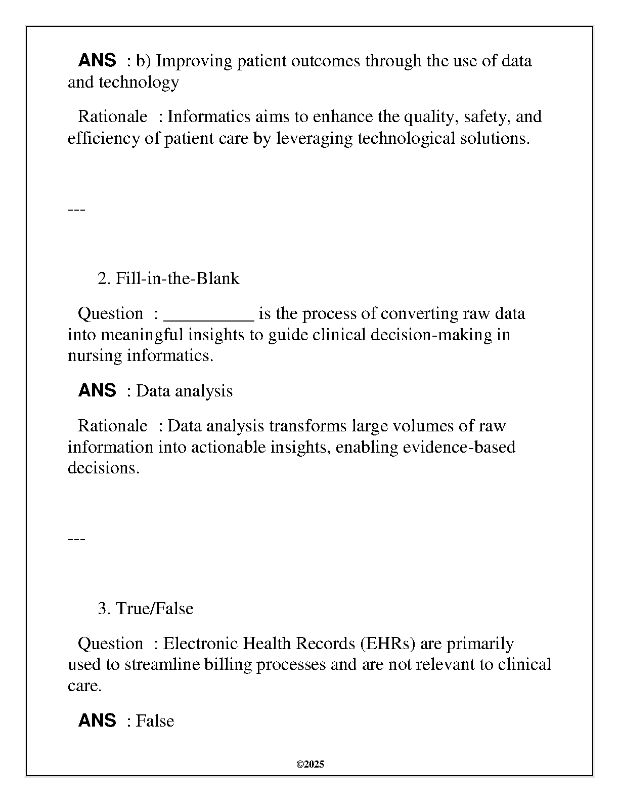 Master the essentials of WGU's D029 NURS 5206 Informatics for Transforming Nursing Care with this comprehensive 2025 FA Review Test Bank. This essential study guide features a complete collection of multiple-choice questions and detailed, verified answers designed to mirror your final assessment. Prepare effectively, deepen your understanding of nursing informatics, and confidently pass your exams on the first try. Available for instant download.