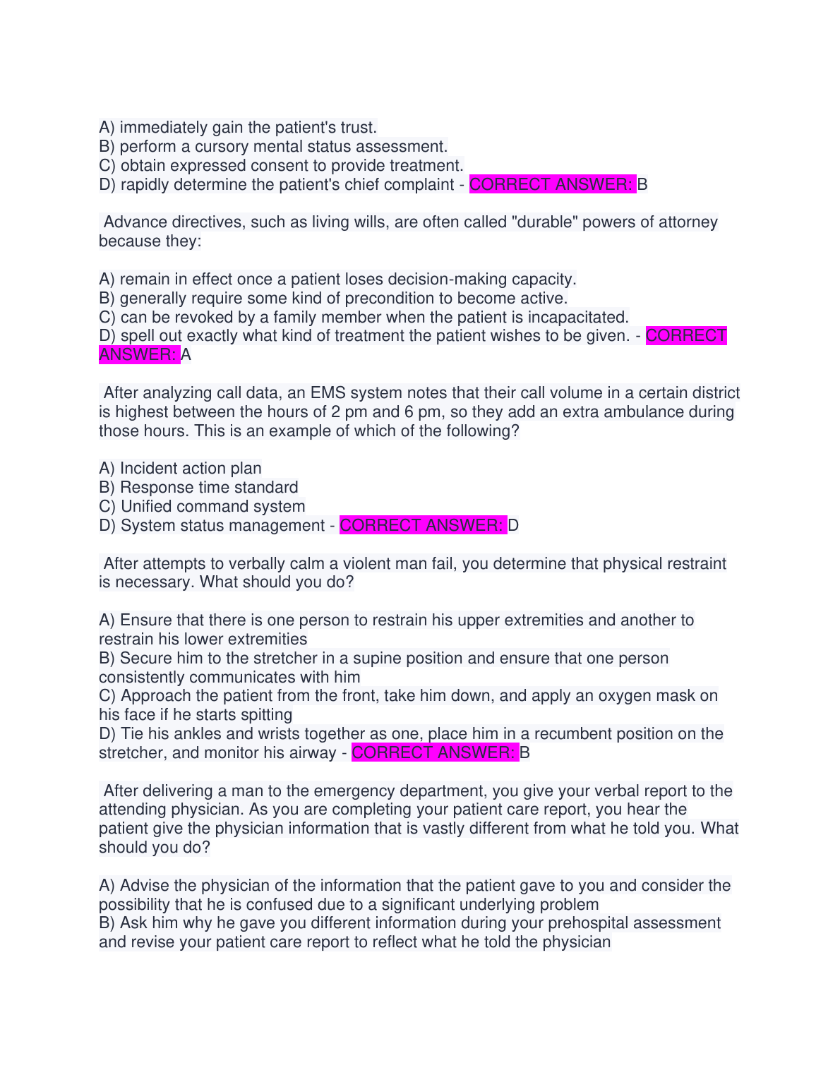 Achieve top scores in your EMS course with our comprehensive 2024-2025 Test Bank for JBL EMS Operations. This premium study resource provides 125 exam-style questions complete with verified, step-by-step answers. Designed to mirror real-world scenarios you'll face in the field and on your exam, this guide helps you solidify your knowledge, identify areas for improvement, and build the confidence needed to pass with flying colors. Prepare smarter, not harder, and guarantee your A+ with this indispensable tool.