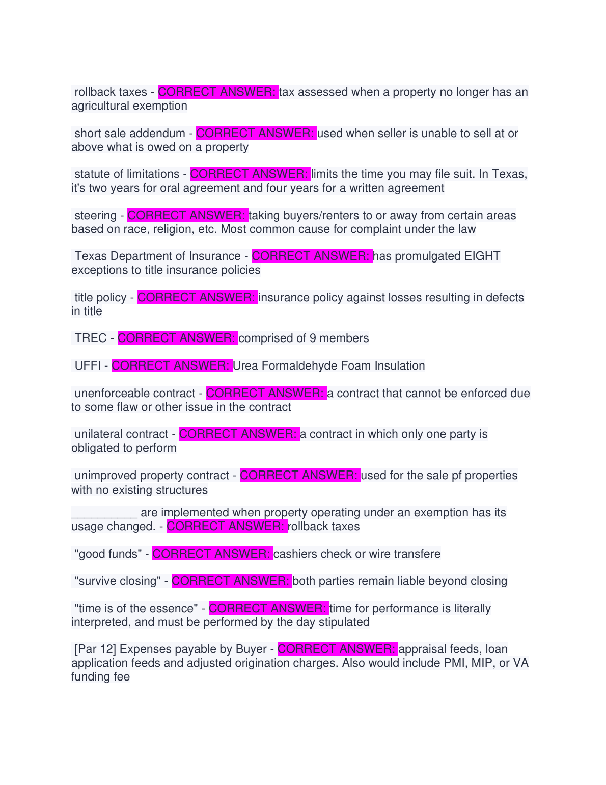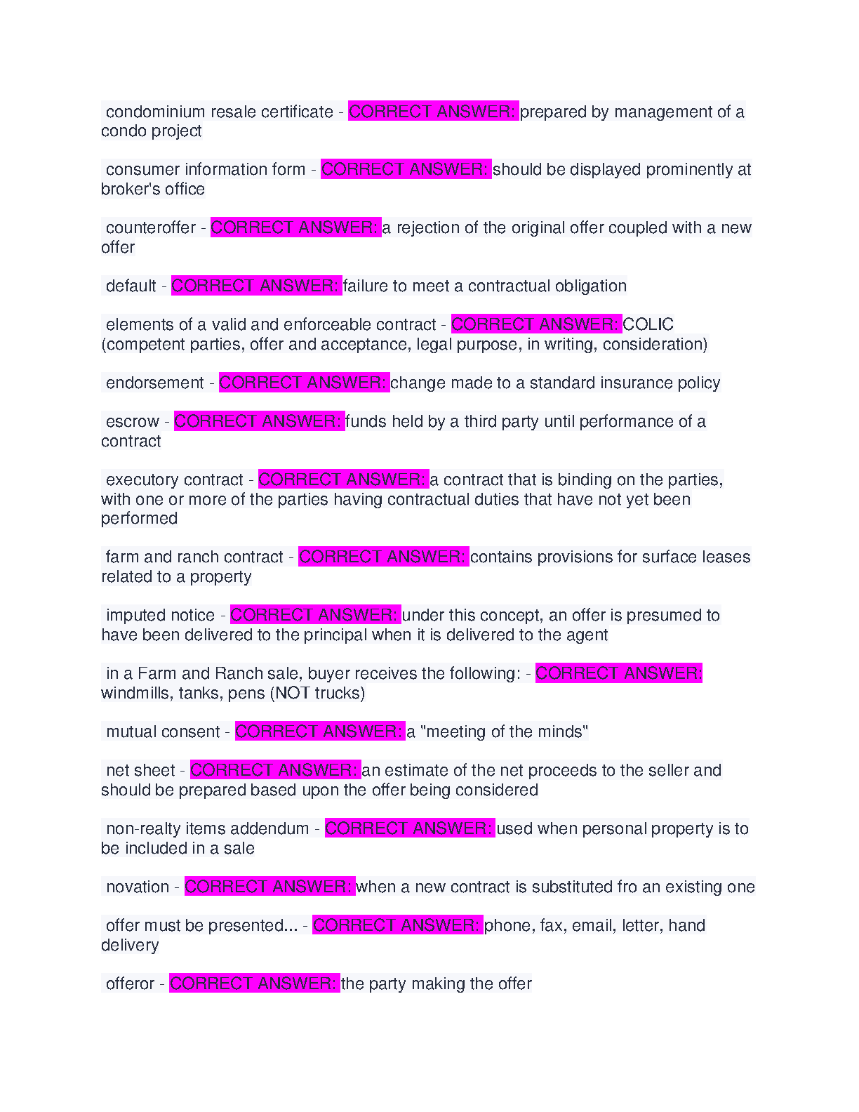 Unlock success in your real estate career with our comprehensive Test Bank for the Promulgated Contract Forms exam from Champions School of Real Estate. This latest 2024-2025 edition is meticulously compiled to ensure you pass on your first attempt. It features an extensive collection of exam questions paired with 100% verified and correct answers, covering all crucial topics from acceptance and addenda to buyer's termination forms. Master the key terminology and concepts needed to earn a guaranteed A+. This is the ultimate study guide to help you avoid resits and confidently ace your Promulgated Contract Forms exam.