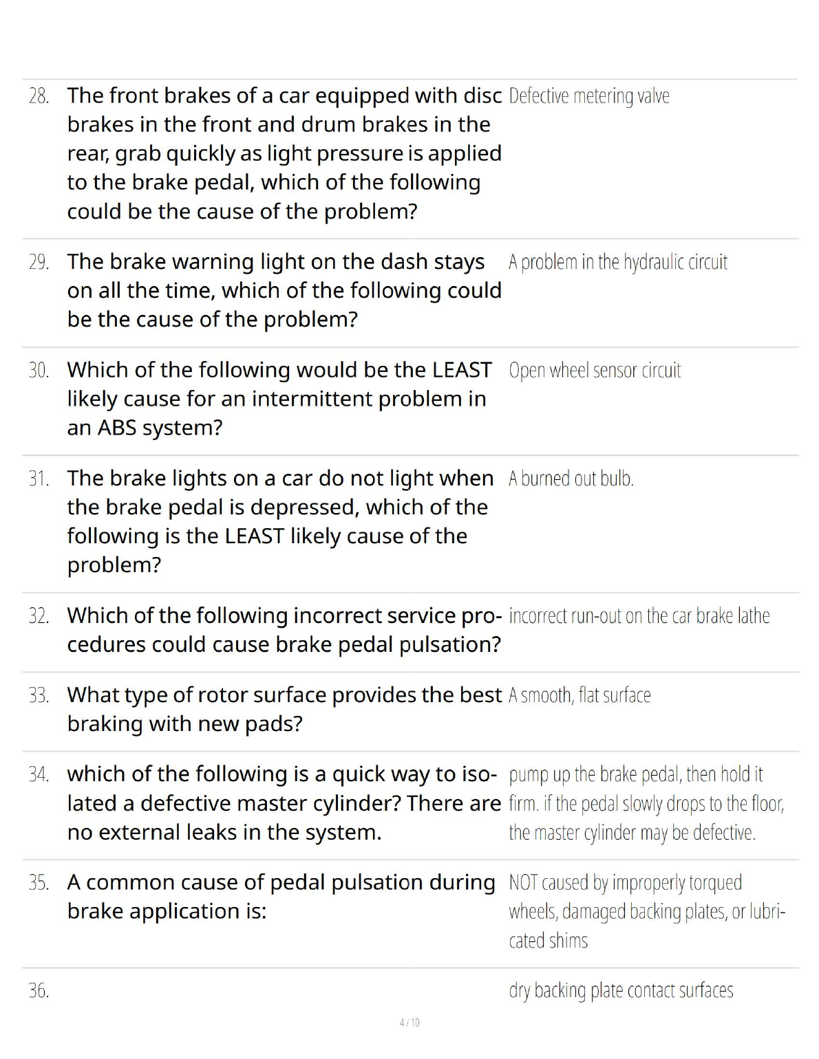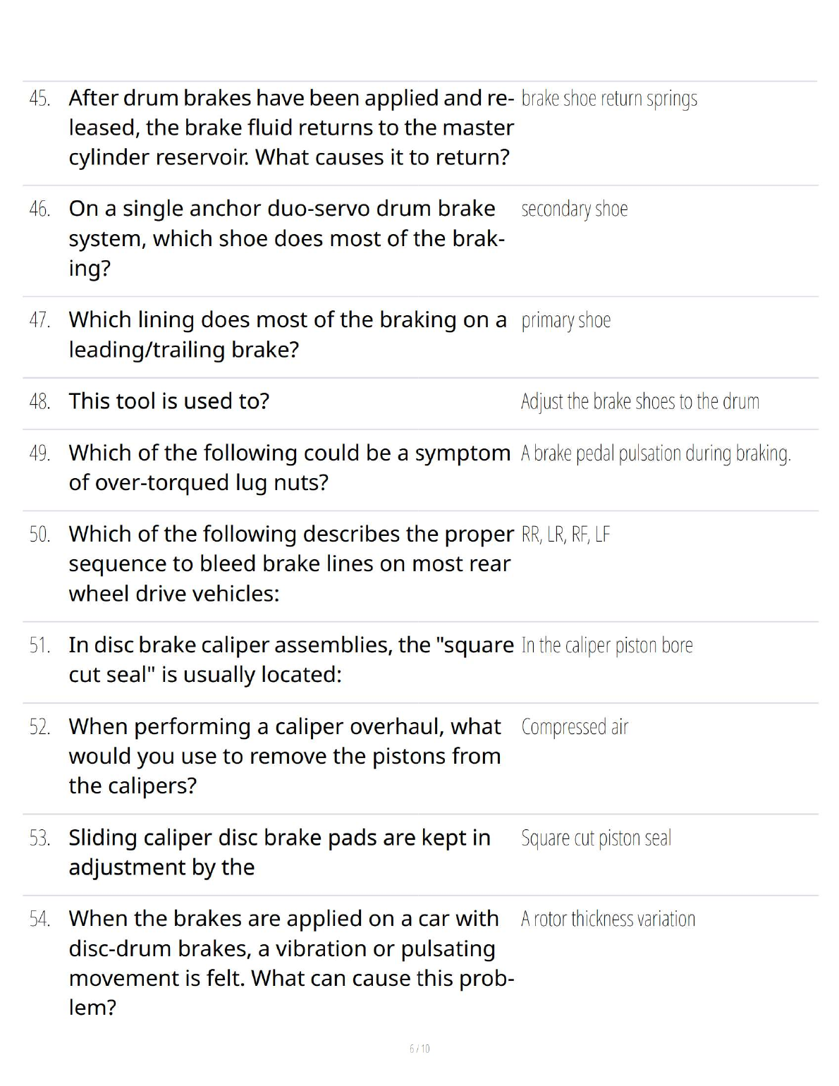 Ace your State Safety Mechanic Certification with our comprehensive test bank for the Brakes Examination. This updated 2025/2026 study guide features a complete set of questions and detailed, verified answers covering all critical topics, including vacuum power boosters, ABS systems, brake shoe installation, and troubleshooting. This resource is expertly designed to help you master the material quickly, build confidence, and pass your certification exam on the very first attempt, saving you from the hassle and cost of resits.