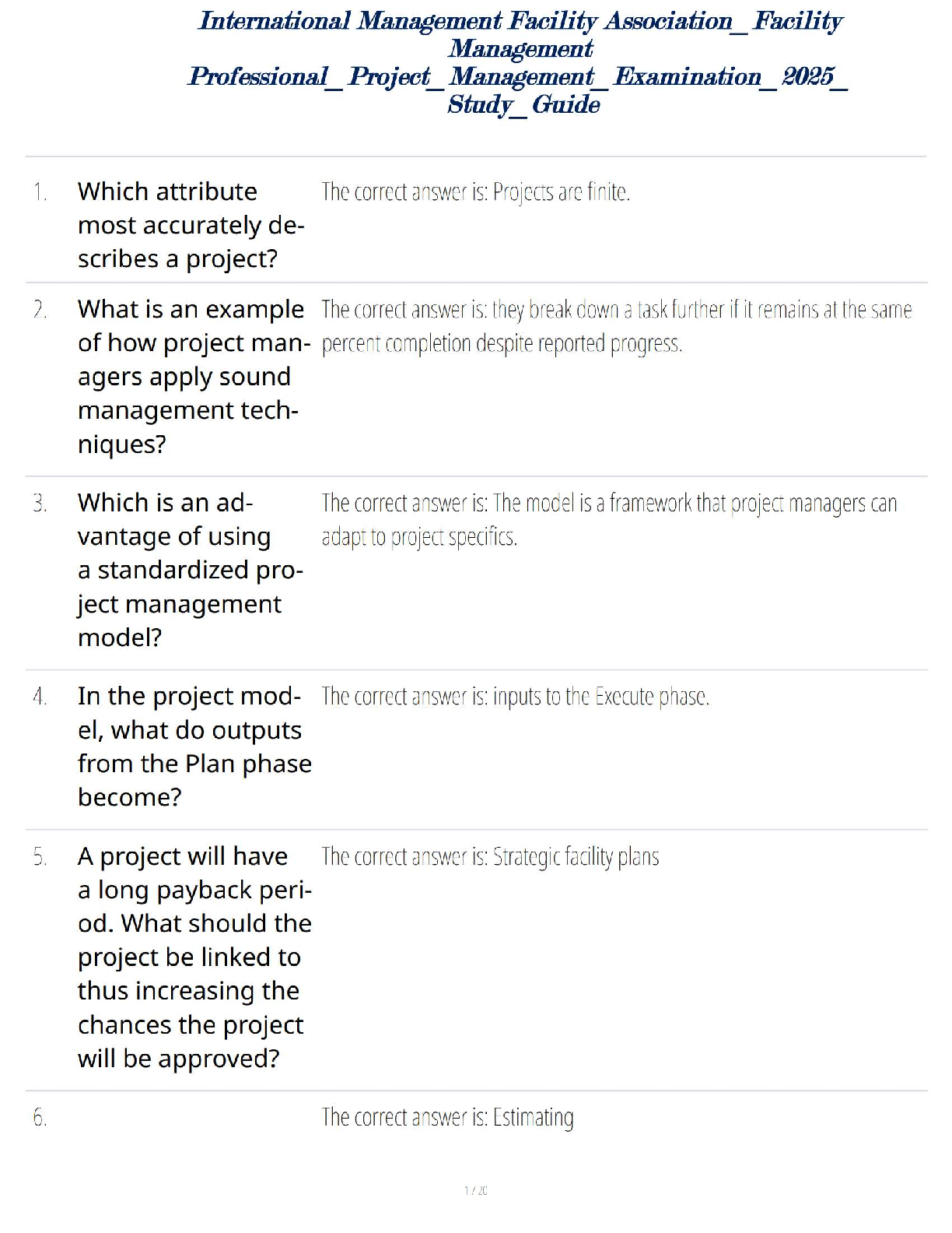 Ace your International Facility Management Association (IFMA) FMP certification with our ultimate study resource for the Project Management exam. This 2025 updated test bank is specifically designed to guarantee your success on the first attempt. Inside, you'll find an extensive collection of real exam questions, each paired with a verified, correct answer. This guide covers all critical topics, from project attributes and management techniques to planning and execution phases. Stop worrying about resits and start studying smart. Master the material, build your confidence, and earn your FMP credential with this essential preparation tool.